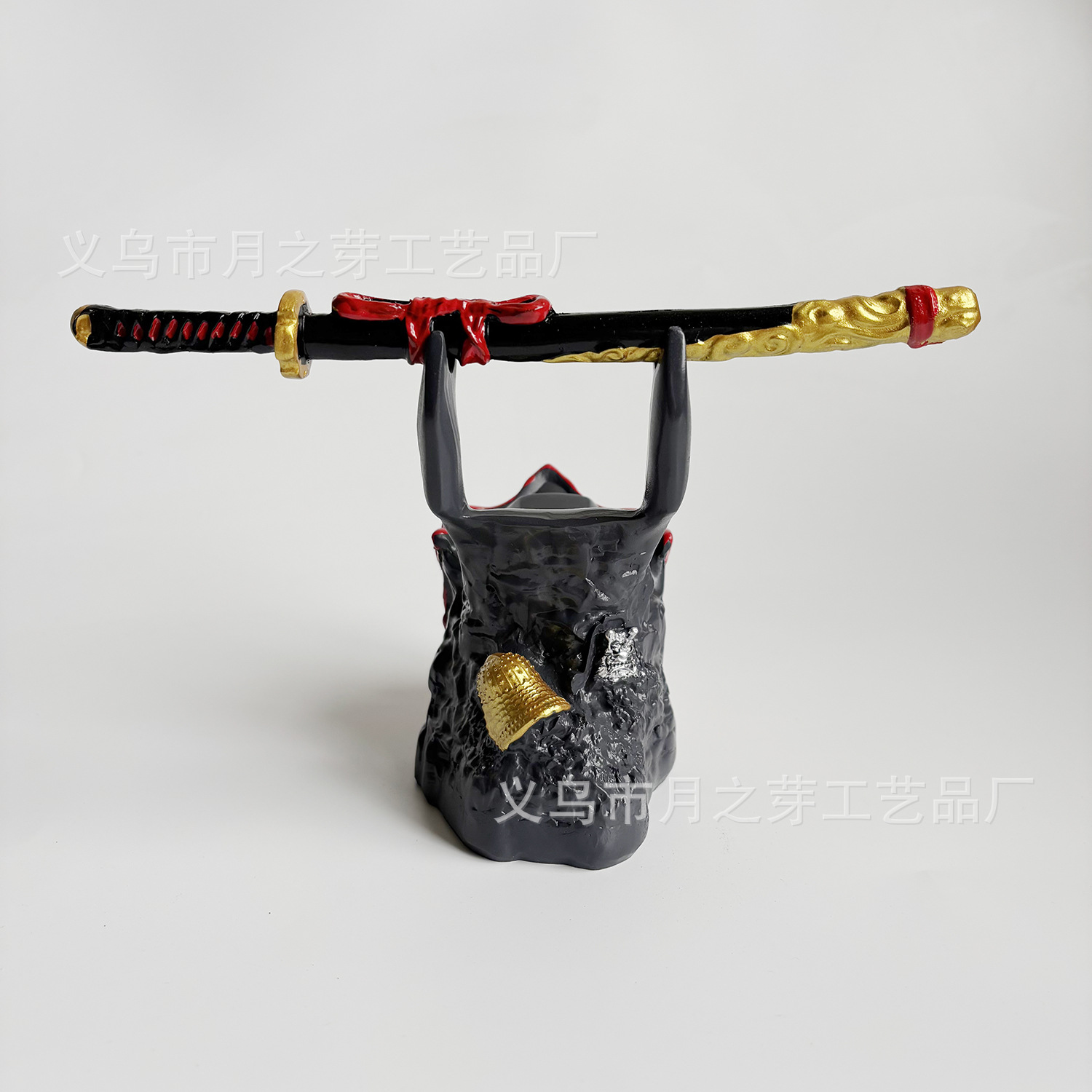국경을 넘는 새로운 할로윈 수지 동상 장식품 2피스 세트 고스트 소드맨 PS4 무선 컨트롤러 및 휴대폰 홀더