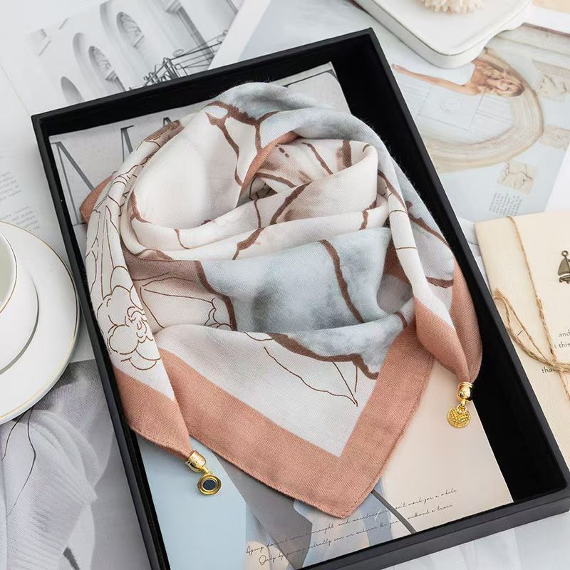 새로운 65.65 마그네틱 버클 실크 스카프 여성용 스퀘어 스카프 겨울 게으른 펜던트 인 스카프 스카프 장식 세련되고 다재다능함