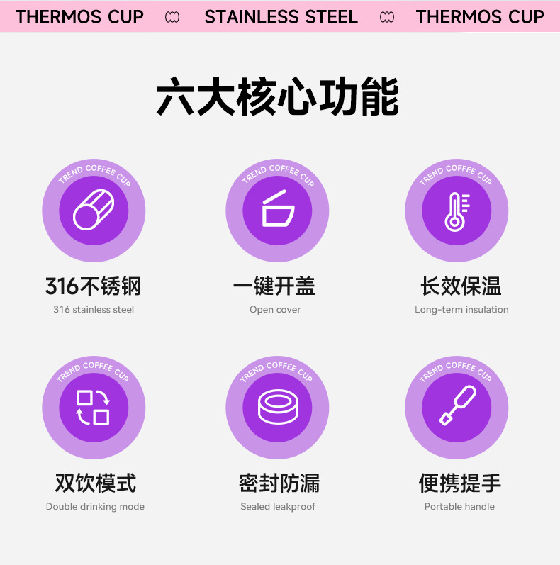 은방울꽃 커피 컵 316 스테인레스 스틸 보온병 컵 멋진 남성과 여성 휴대용 물 컵 자동차 선물 컵 사용자 정의스토어 가기