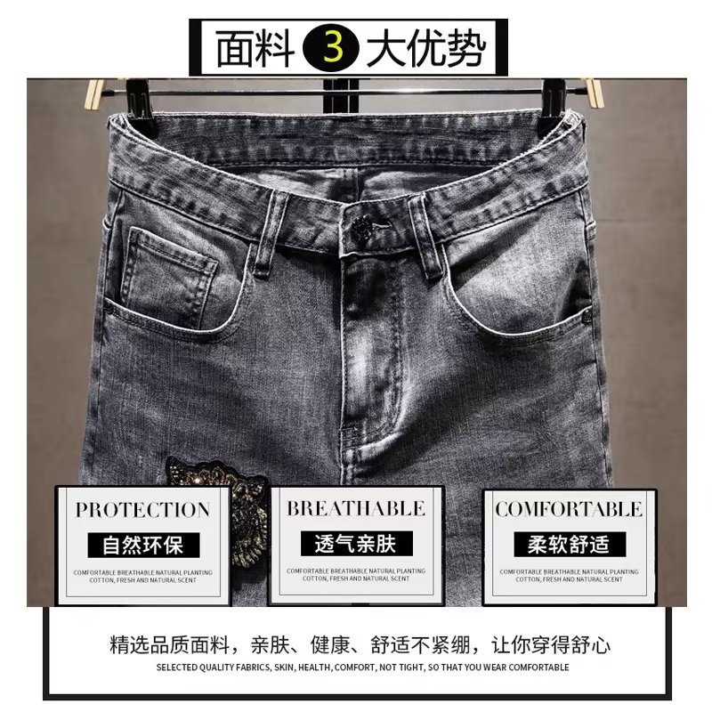 블랙 프린트 청바지 남성 트렌디 브랜드 스트레치 팬츠 봄 스타일 핸섬 팬츠 남성 청바지스토어 가기