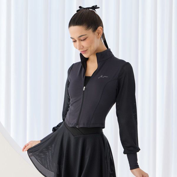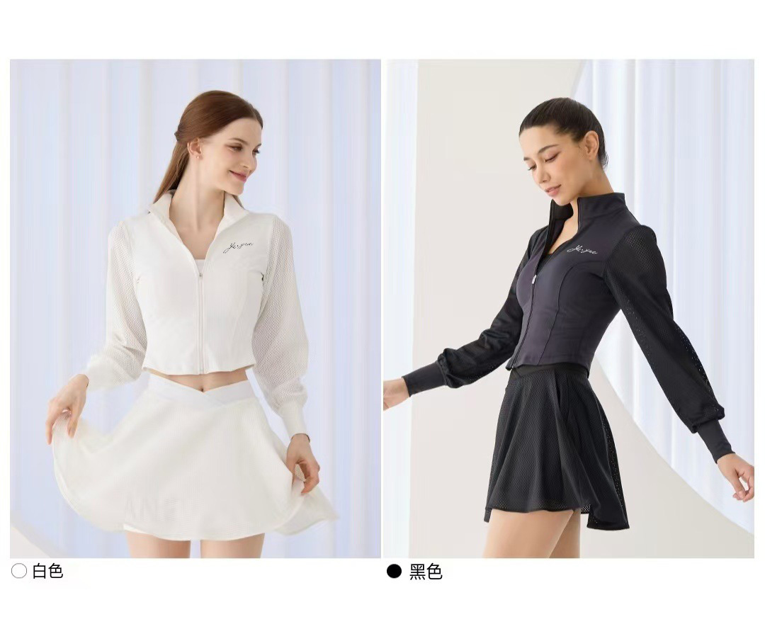 새로운 패션 테니스복 긴팔 여성 야외 스포츠 자외선 차단 통기성 스탠드 칼라 골프복 배드민턴 상의