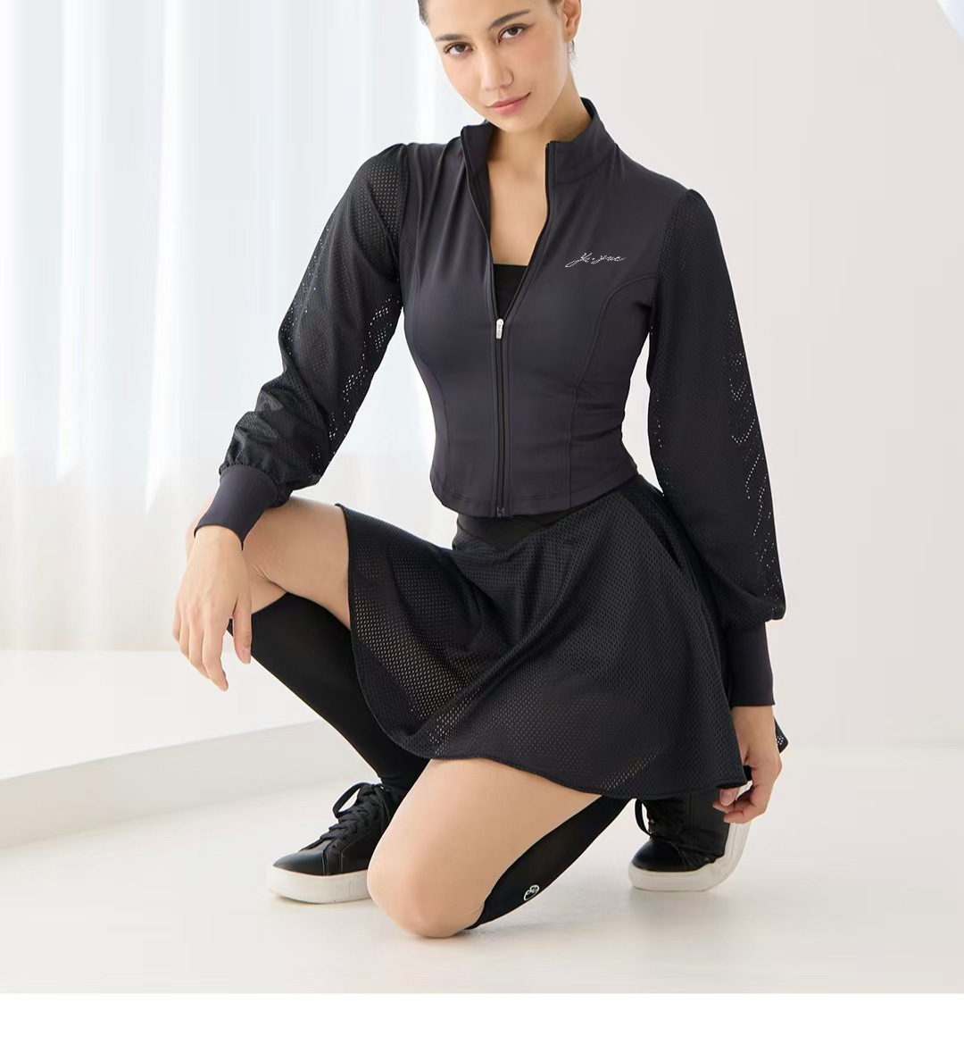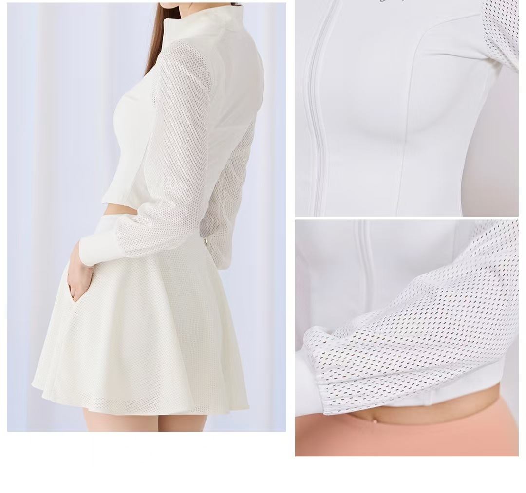 새로운 패션 테니스복 긴팔 여성 야외 스포츠 자외선 차단 통기성 스탠드 칼라 골프복 배드민턴 상의스토어 가기