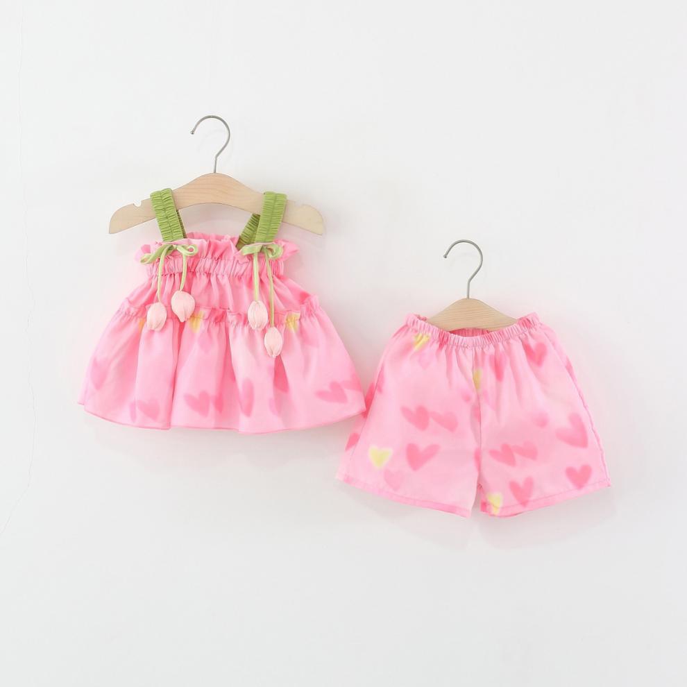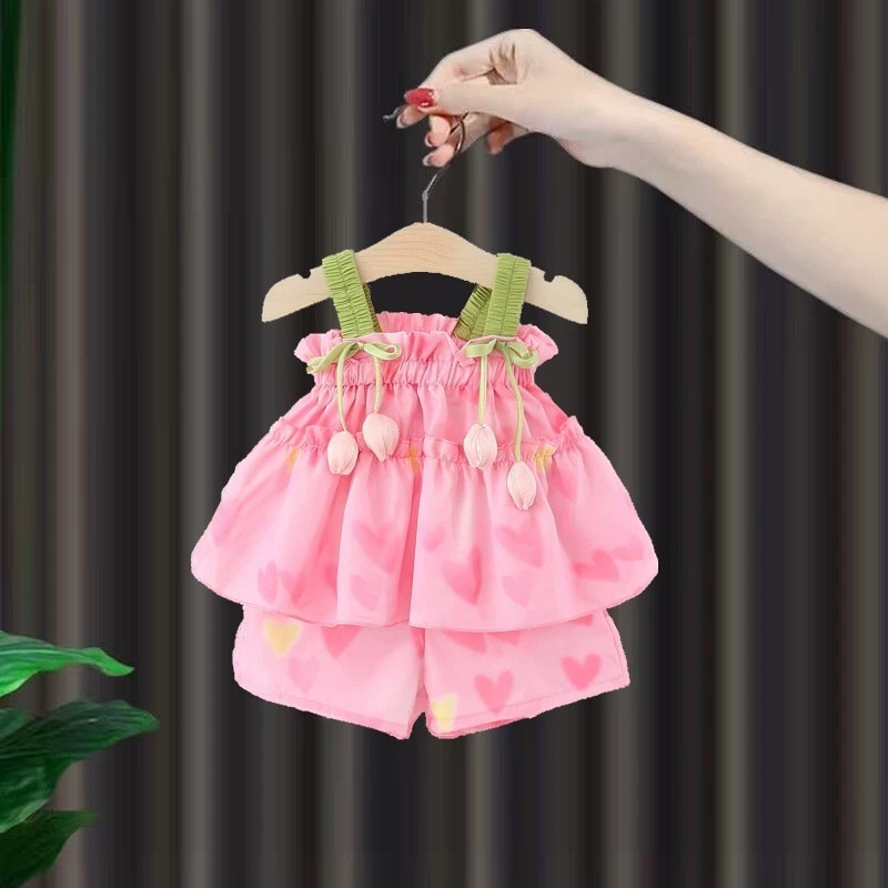 여자 정장 2025 여름 새 스타일 한국 스타일 어린이 스타일 조끼 아기 여름 얇은 반바지 투피스 유행 세트스토어 가기