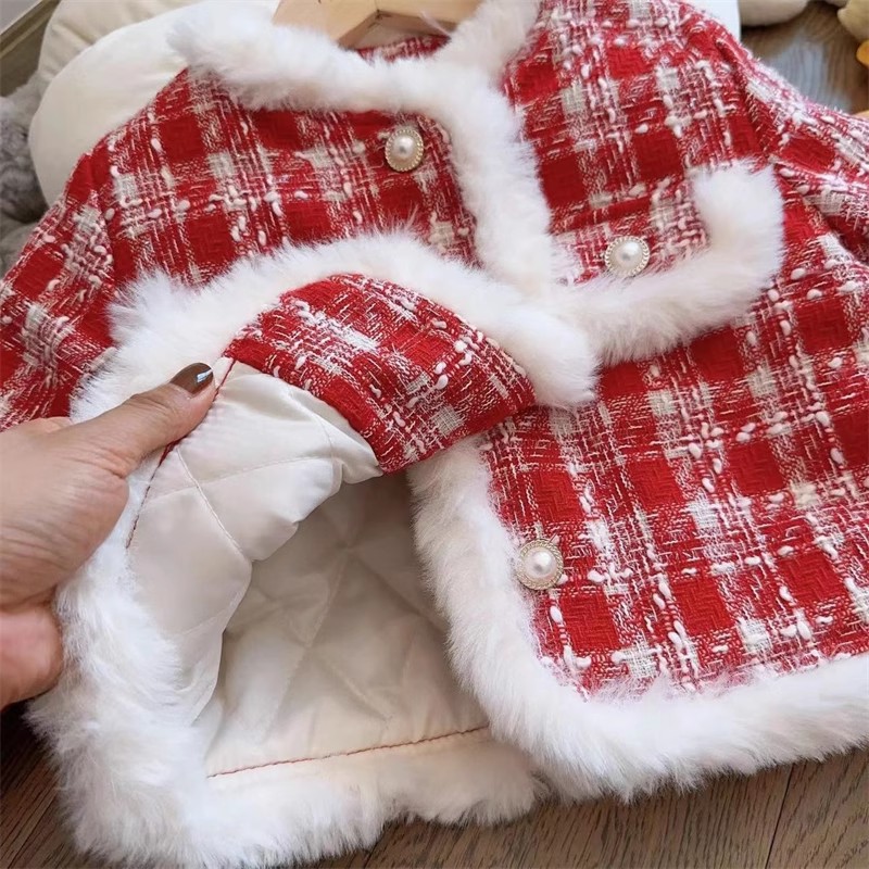 새로운 스타일의 여아 새해맞이 정장, 겨울 어린이 면 두꺼운 작은 향기로운 빨간색 새해 정장스토어 가기