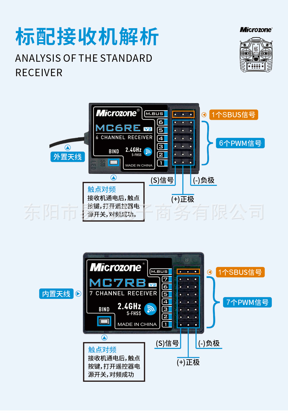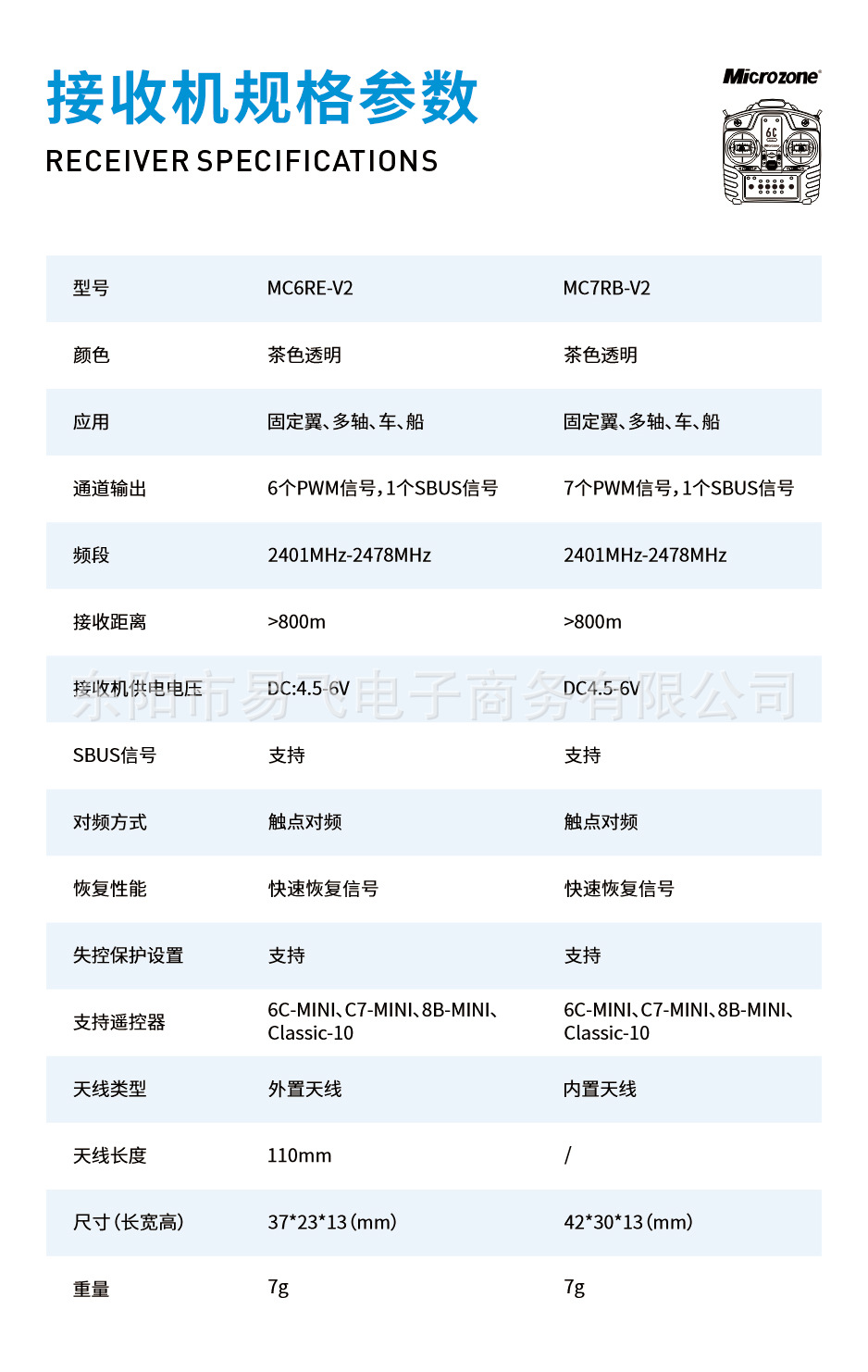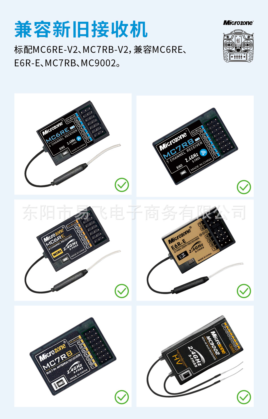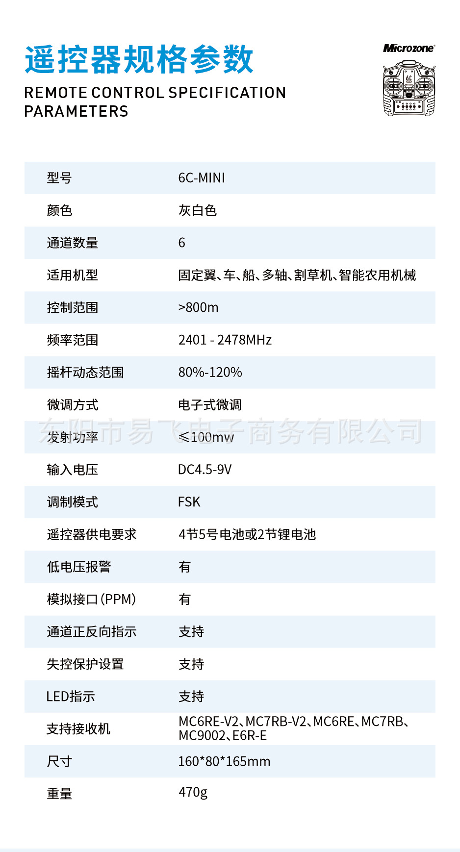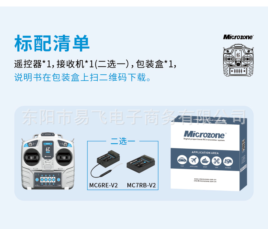 MC6C 원격 제어 2.4G 6 채널 수신기 MC6C 미니 마이크 고정 날개 4 축 자동차 및 선박 모델 도매