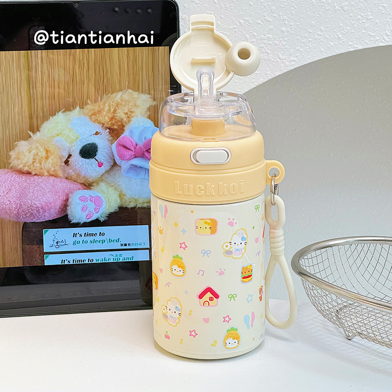 빨대 컵 2025 더블 마시는 컵 고급스러운 316 스테인레스 스틸 학교 보온병 컵 여성 귀여운 새 컵스토어 가기