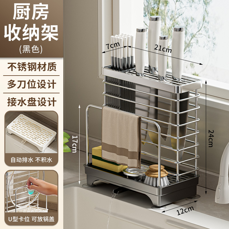 • 2505 자체 배수 겸용 칼 홀더 [투명 블랙 실버] [스테인리스 201 재질]