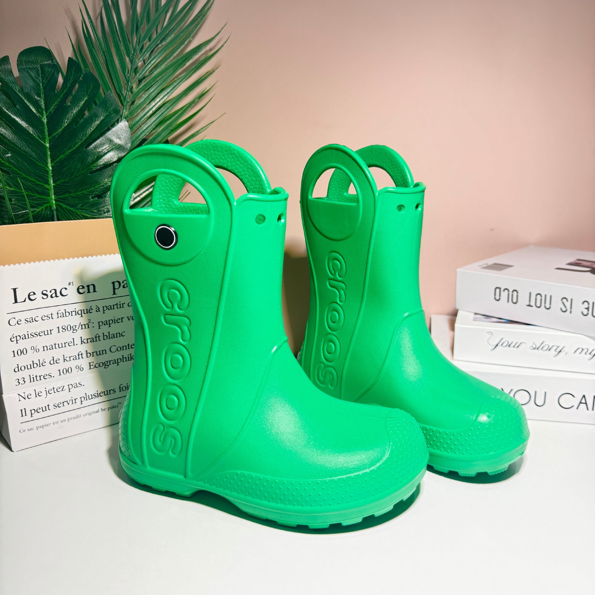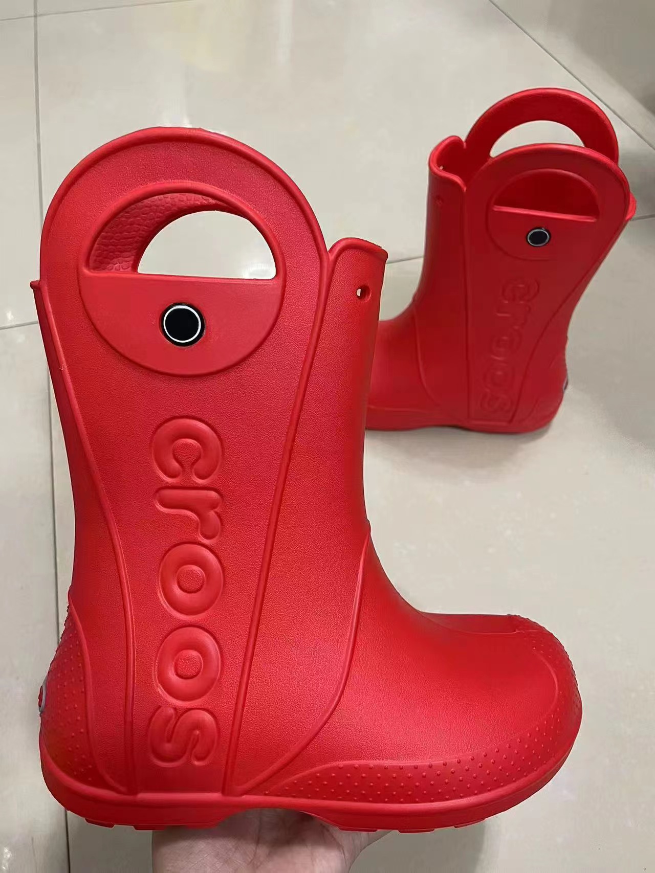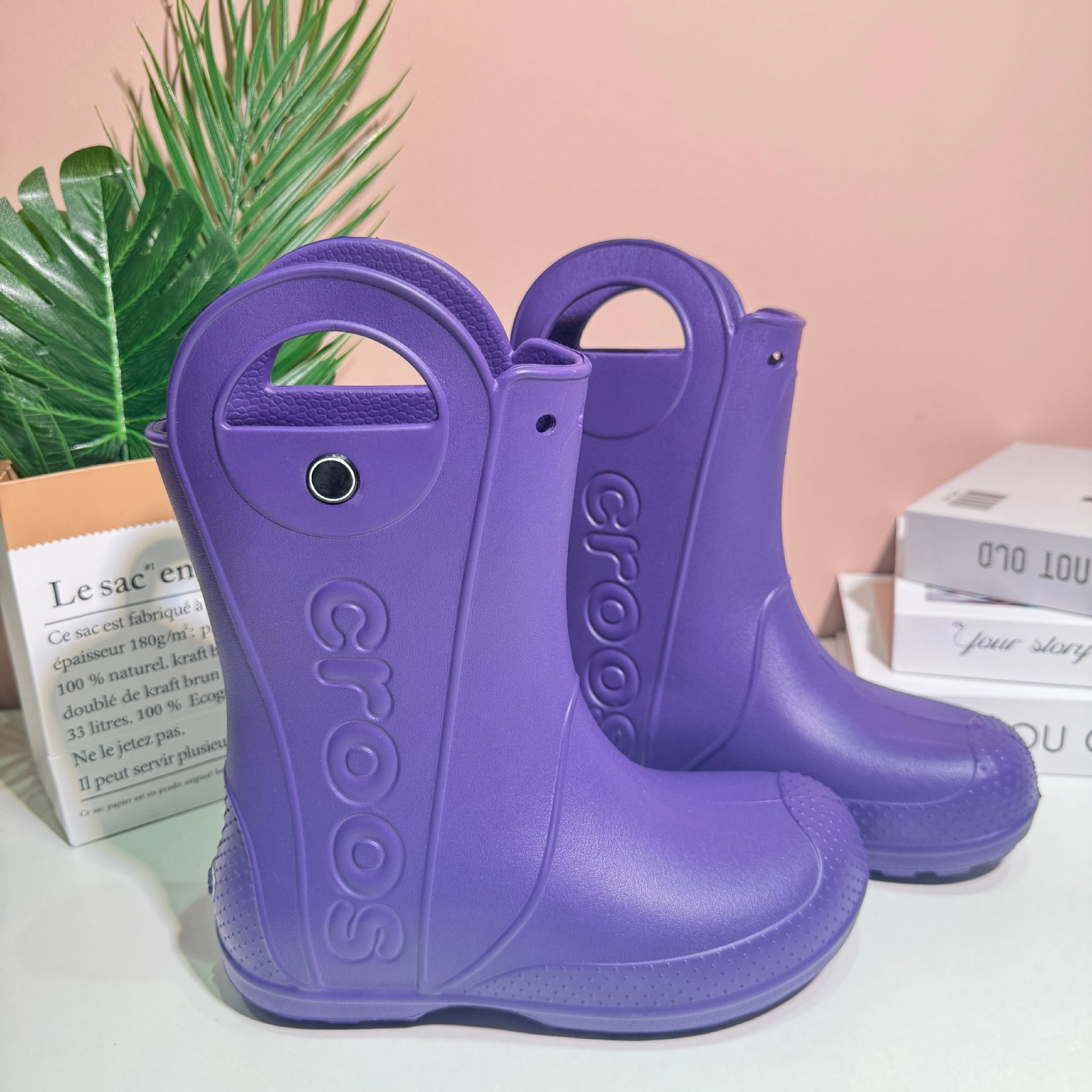 크로스 중간 길이 아동용 구멍 신발 레인부츠 여성 방수 신발 학생 인기 짧은 레인부츠 EVA 소재