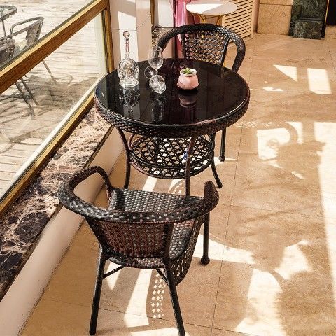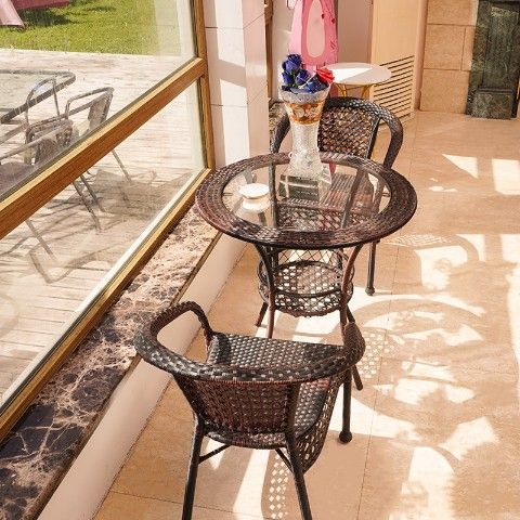 발코니 티 테이블과 의자, 등나무 의자 3종 세트, 사각 티 테이블, 안뜰 등나무 의자, 야외 등나무 야외 테이블과 의자