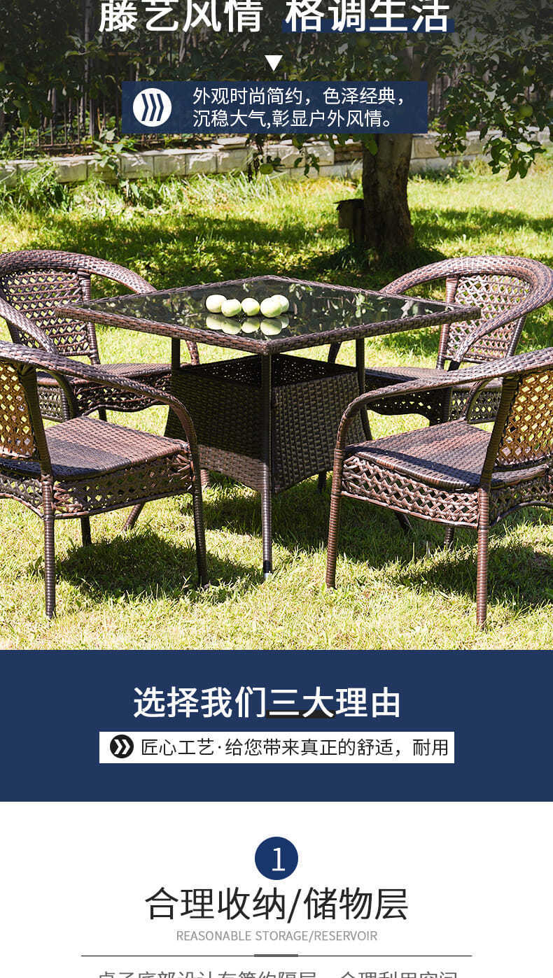 발코니 티 테이블과 의자, 등나무 의자 3종 세트, 사각 티 테이블, 안뜰 등나무 의자, 야외 등나무 야외 테이블과 의자스토어 가기