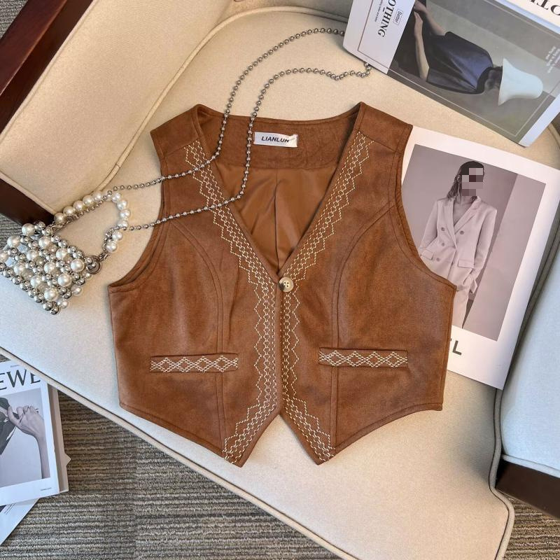 G6N 보헤미안 복고풍 중공업 자수 조끼 사슴 가죽 벨벳 조끼 여성 여행 착용 서양 카우보이 조끼스토어 가기