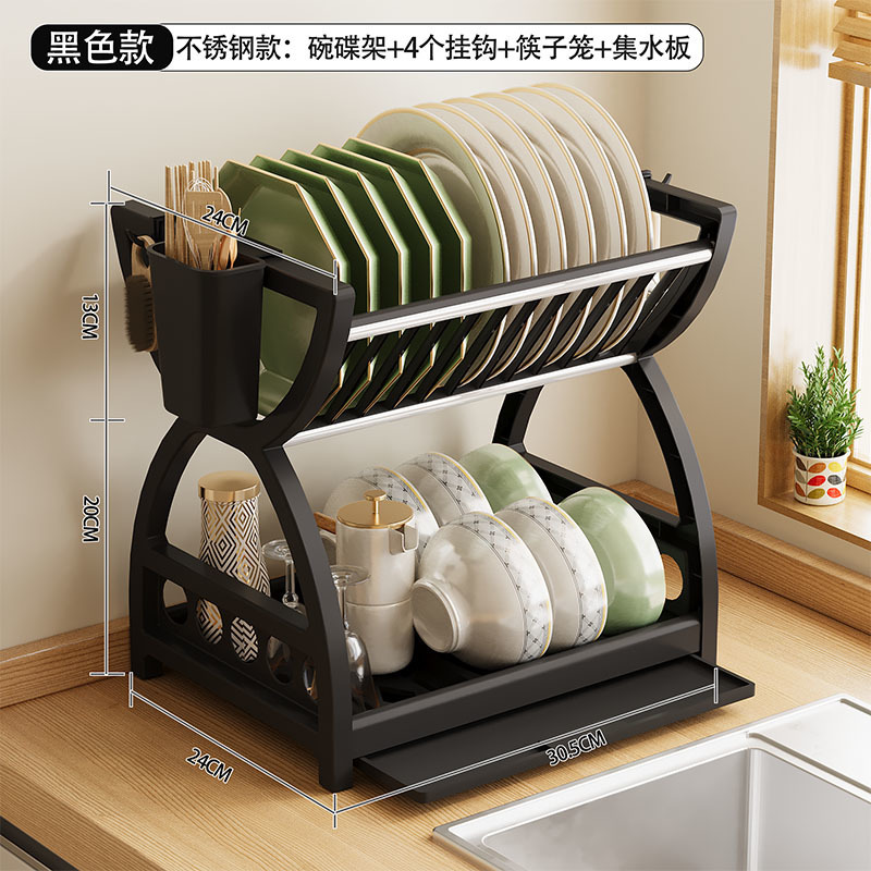 • [블랙 스테인리스 모델] 접시걸이 4개 + 젓가락통 + 물받이판
