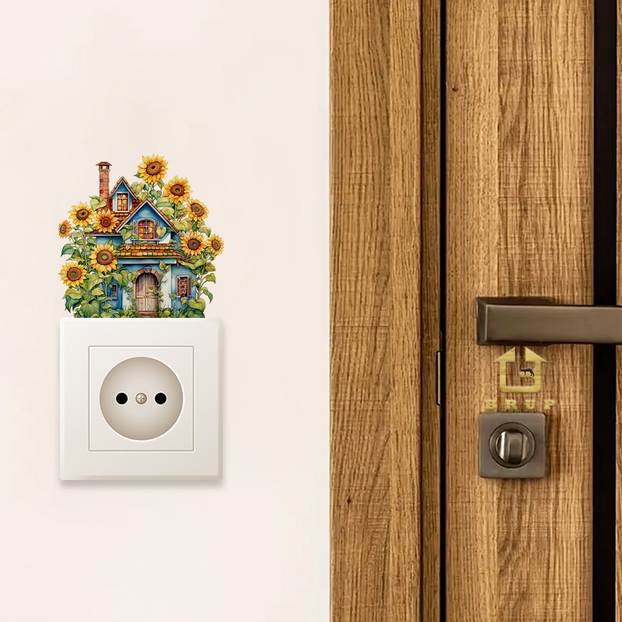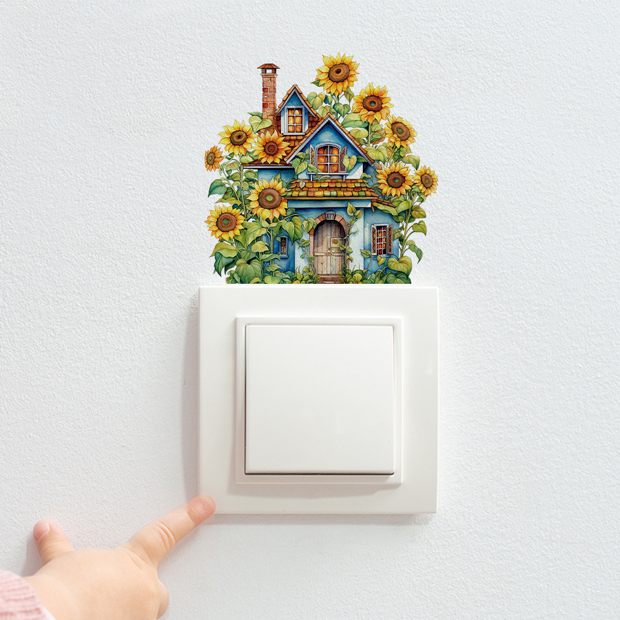 BR3929C 해바라기 복고풍 오두막 만화 자체 접착 스위치 스티커 침실 주방 실내 홈 장식 스티커