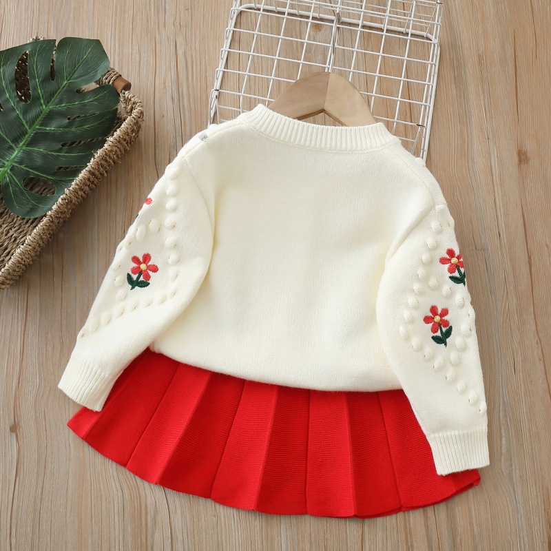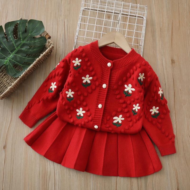 2025 가을, 겨울 새로운 니트 카디건 투피스 어린 소녀 코트 소녀 스웨터 세트