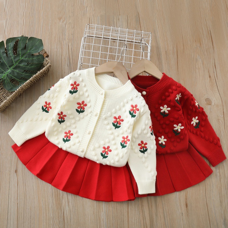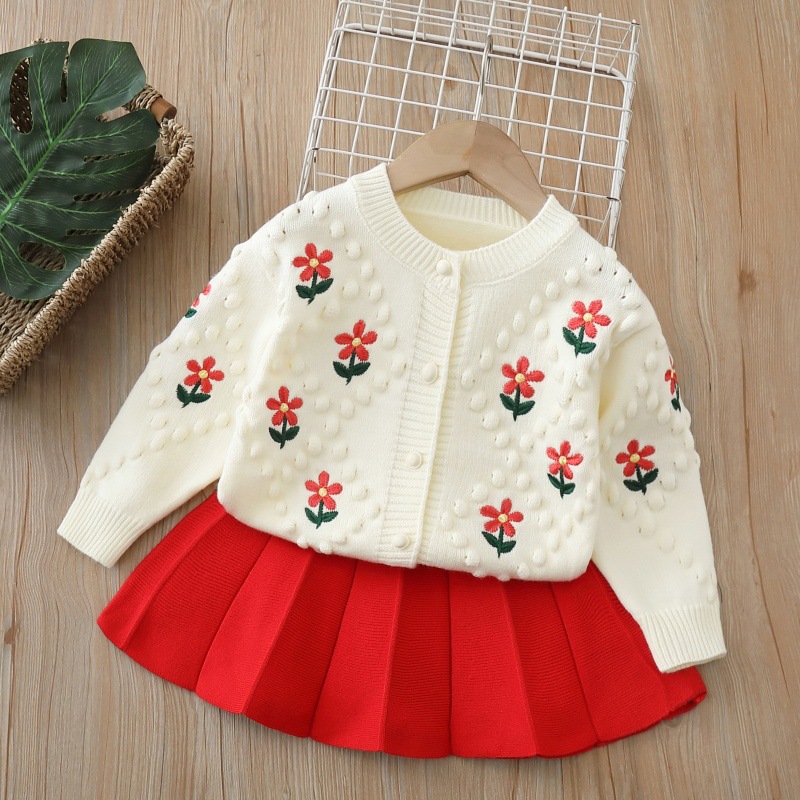 2025 가을, 겨울 새로운 니트 카디건 투피스 어린 소녀 코트 소녀 스웨터 세트스토어 가기