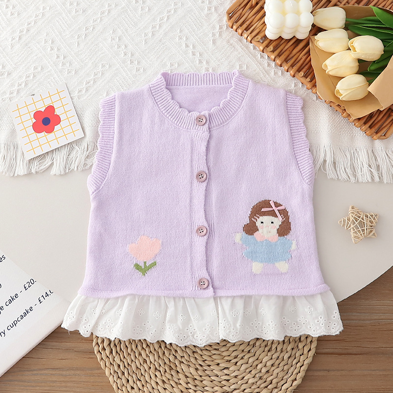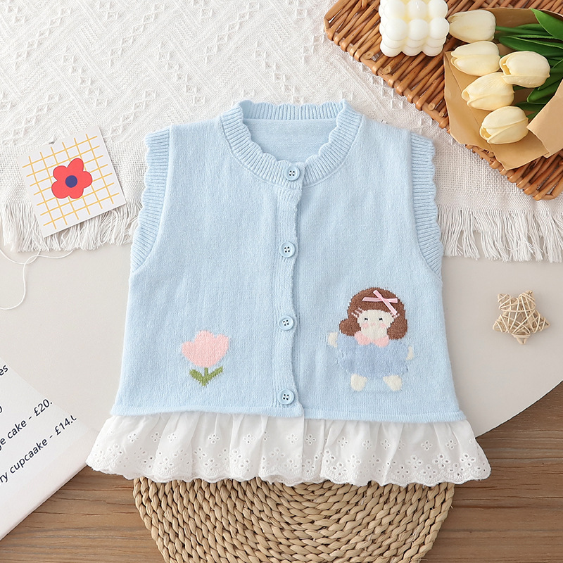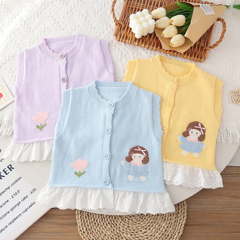 아기 조끼 2025 봄 옷 아기 소녀 니트 조끼 소녀 스웨터 카디건 조끼 봄, 가을 옷 겉옷