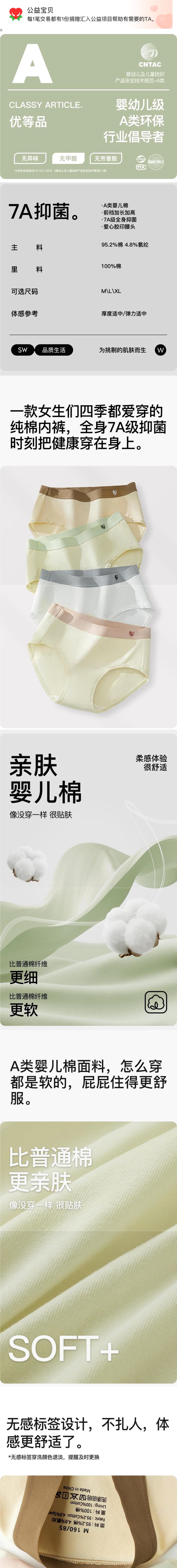 Secret World7A 속옷 소녀 여름 통기성 확장 가랑이 소녀 중간 허리 원활한 팬티