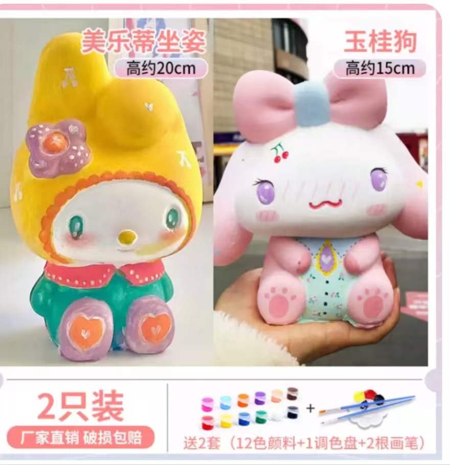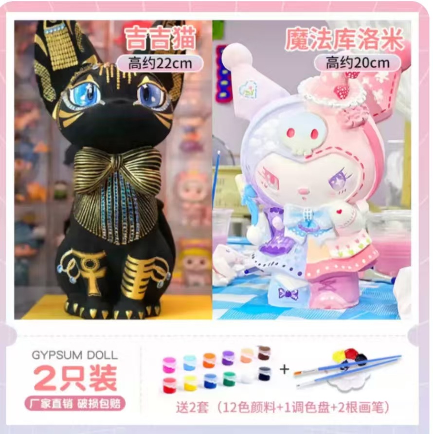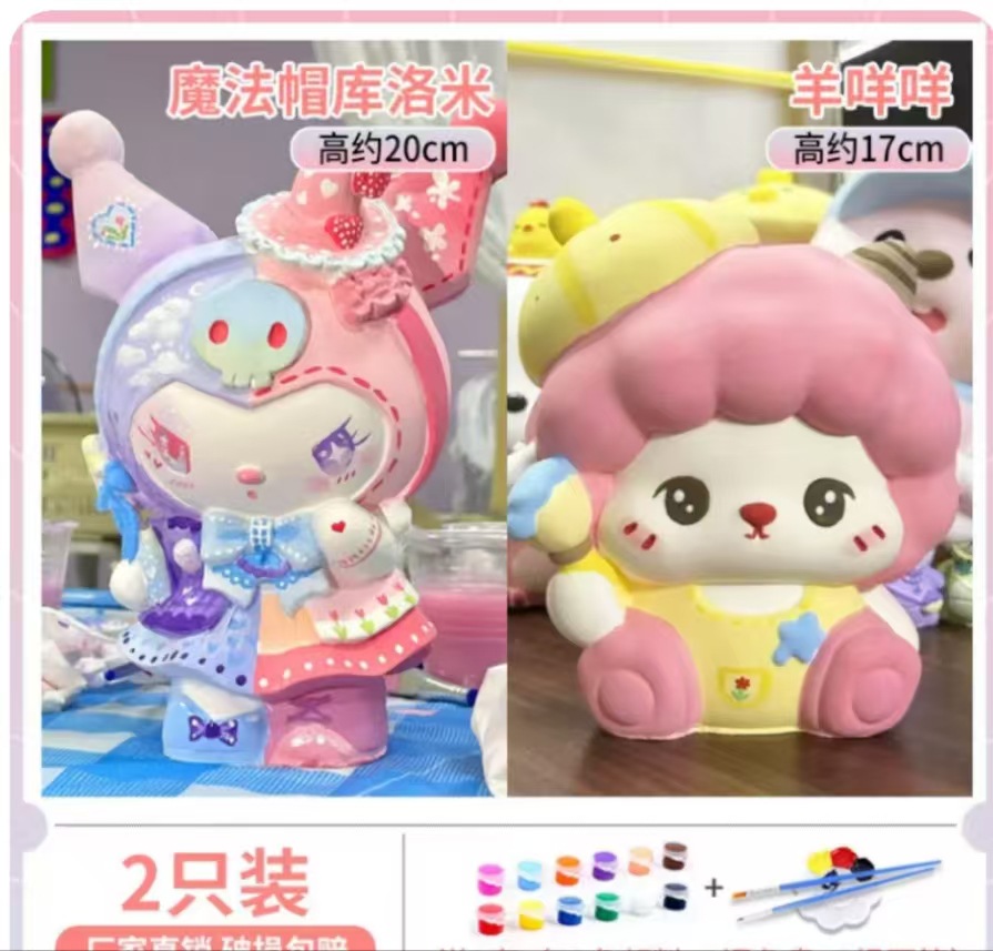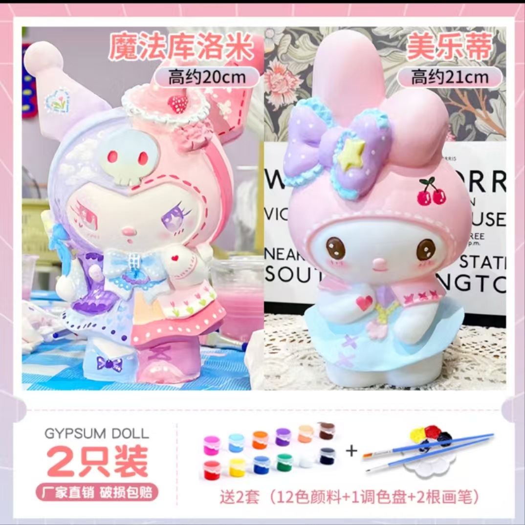 쿠로미 석고 인형 색칠 인터넷 연예인 대형 돼지 저금통 어린이 DIY 낙서 페인트 석고 금형 흰색 배아스토어 가기