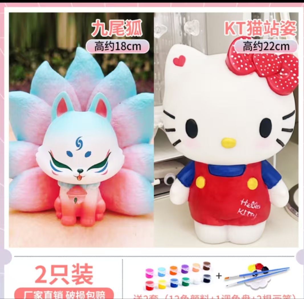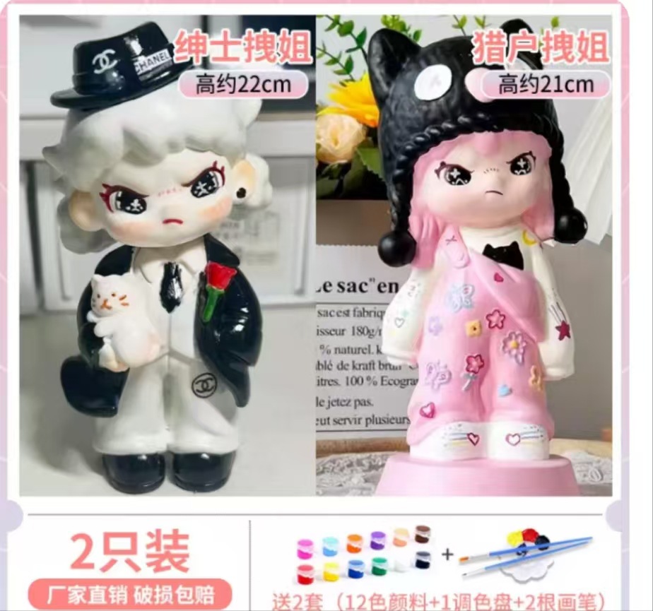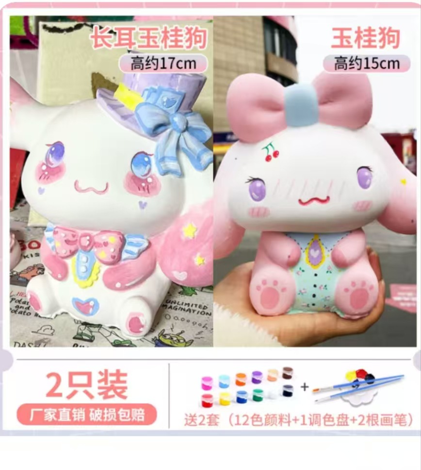 쿠로미 석고 인형 색칠 인터넷 연예인 대형 돼지 저금통 어린이 DIY 낙서 페인트 석고 금형 흰색 배아스토어 가기