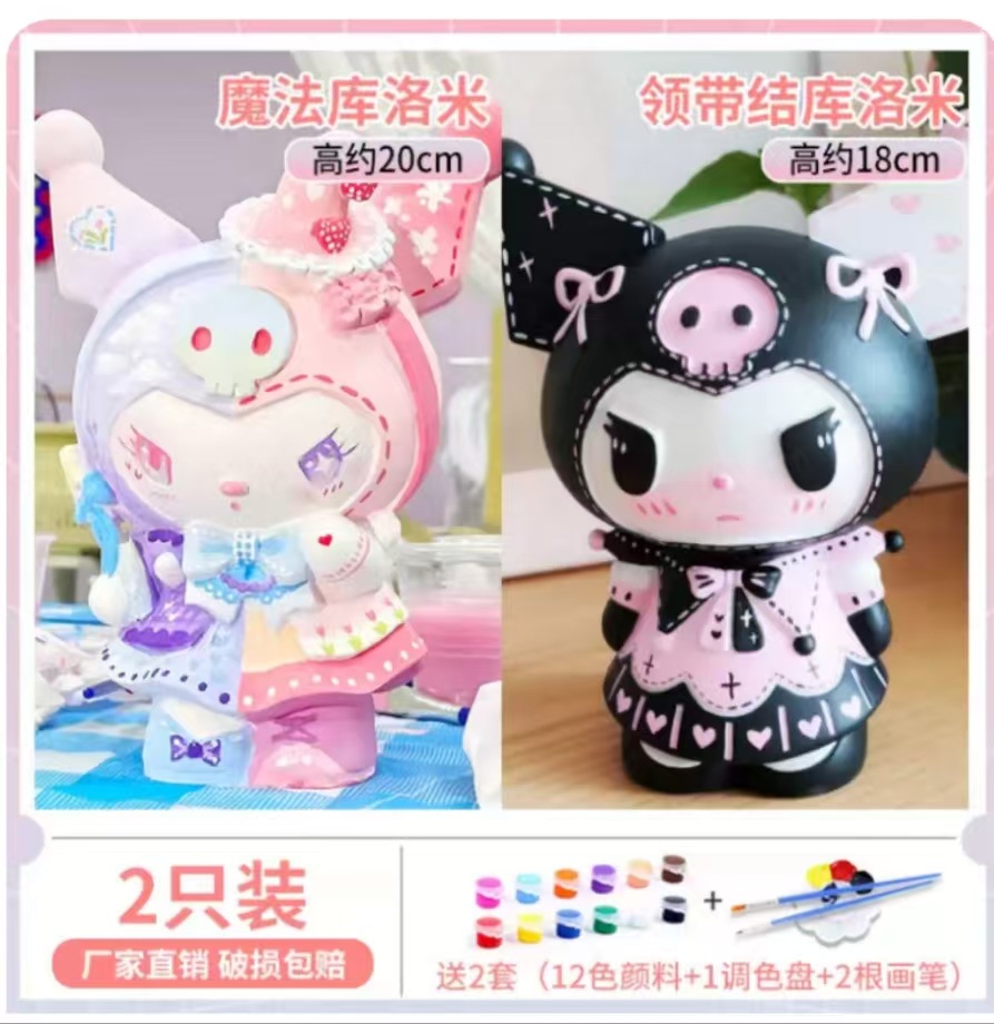 쿠로미 석고 인형 색칠 인터넷 연예인 대형 돼지 저금통 어린이 DIY 낙서 페인트 석고 금형 흰색 배아
