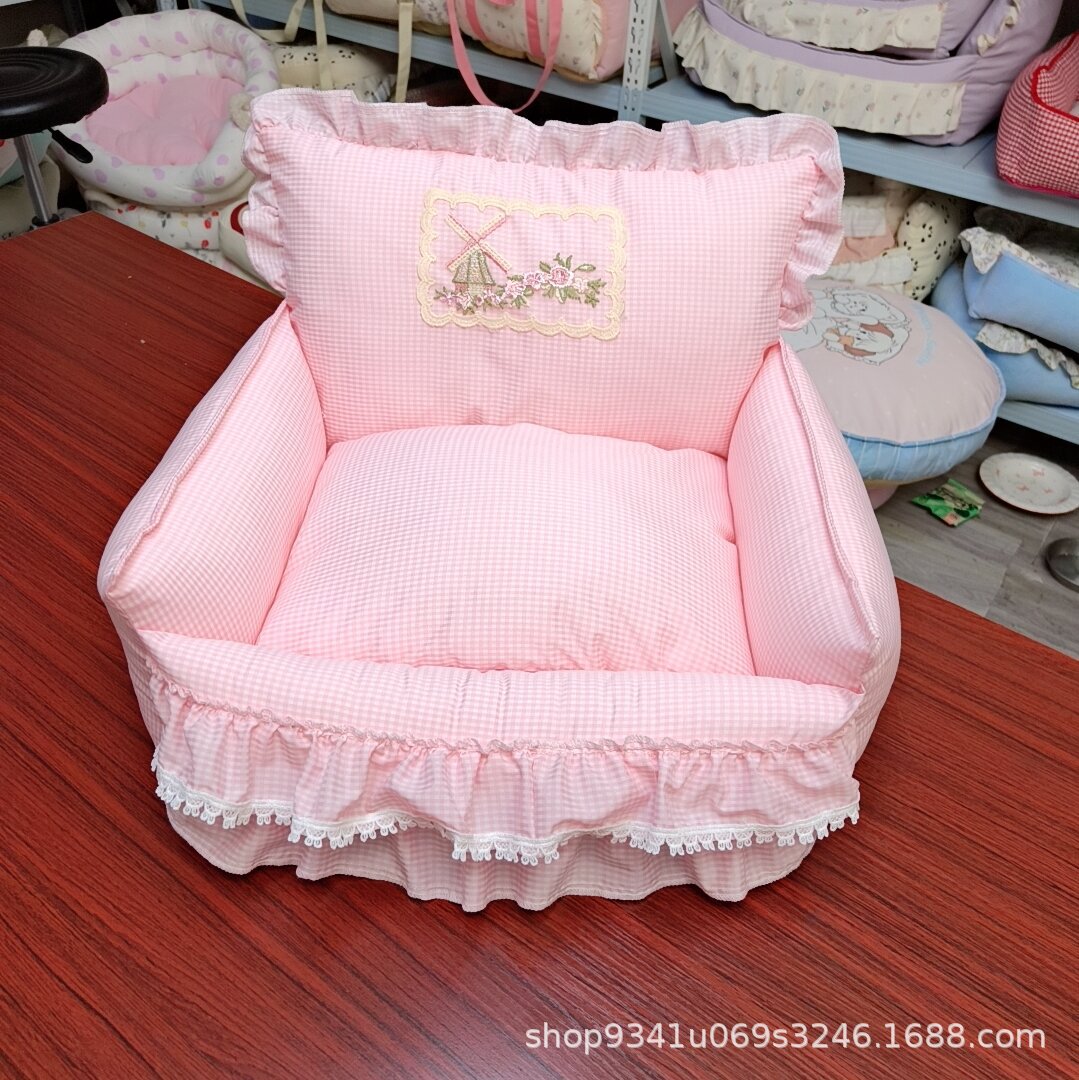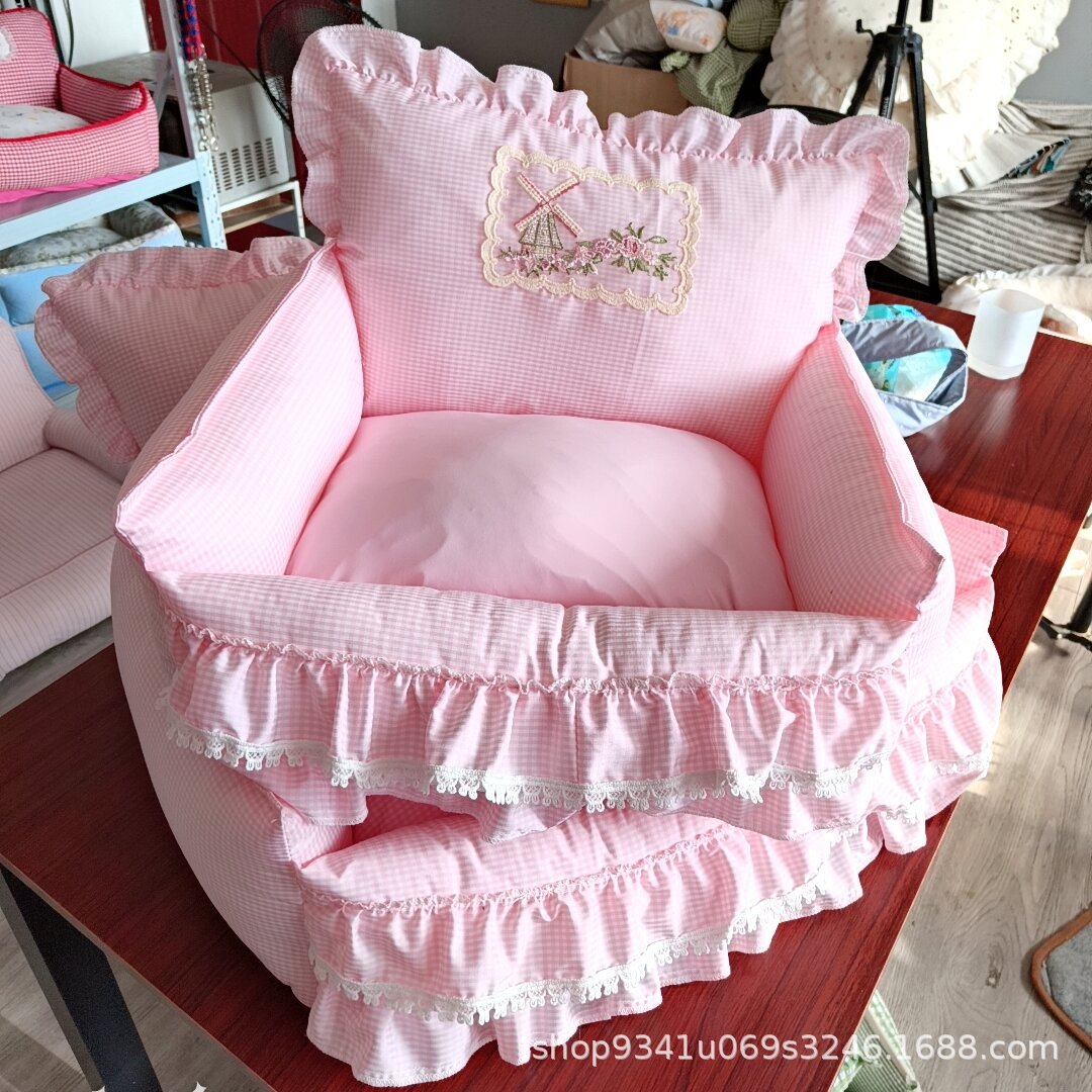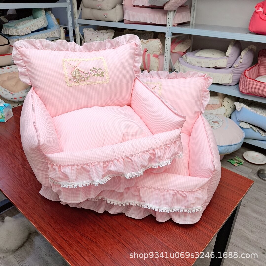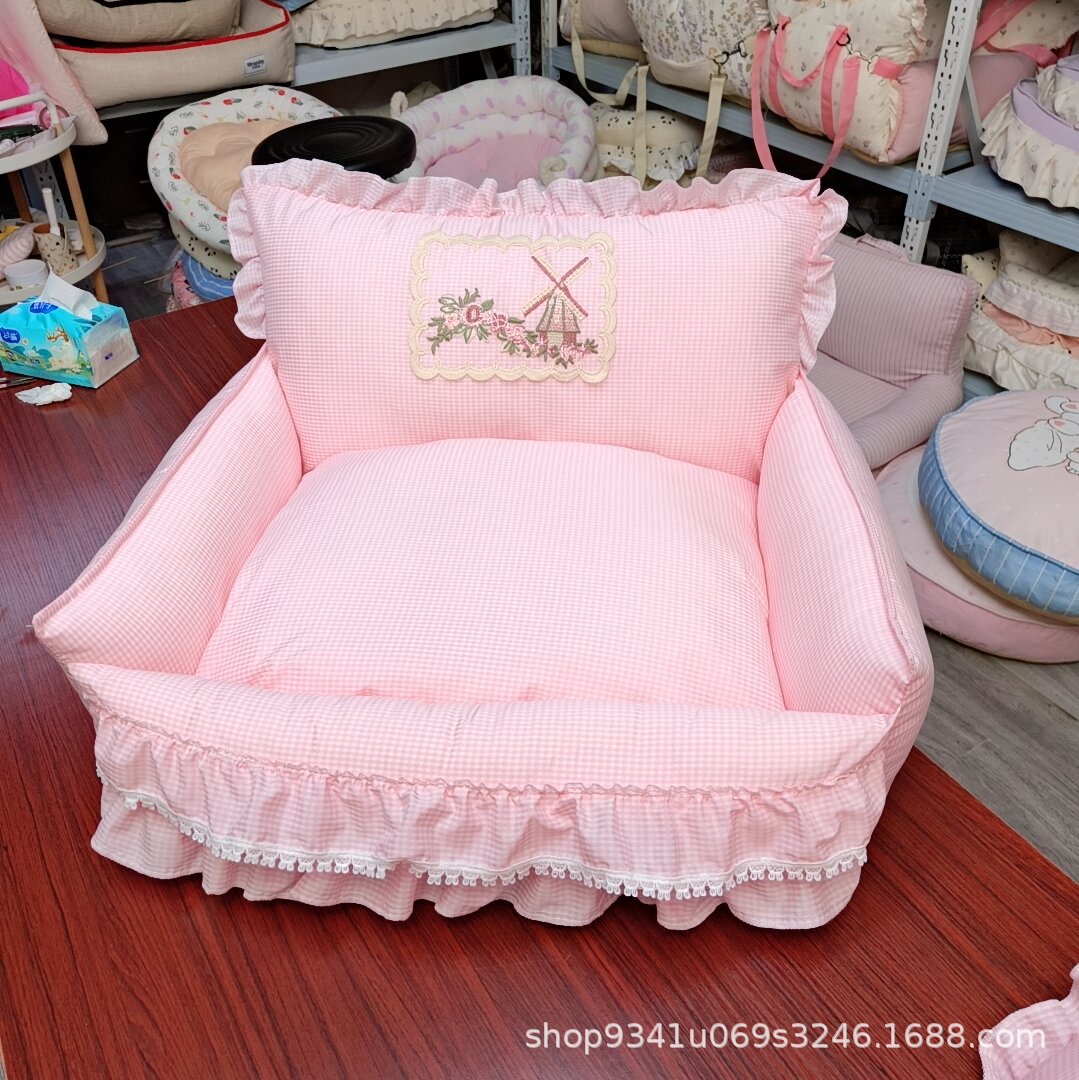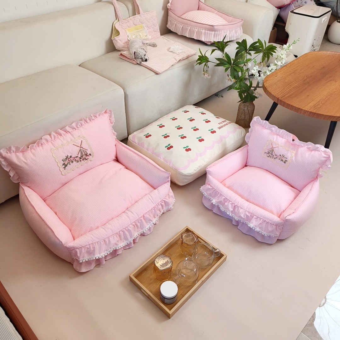 Miman Duo 냉각 소파 베드 고양이 개집 분리 및 세척 가능 사계절 공주 스타일 작은 개 Shih Tzu Bear
