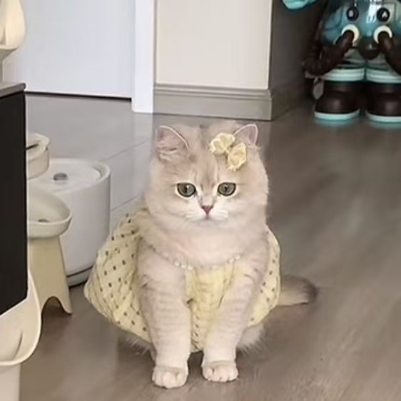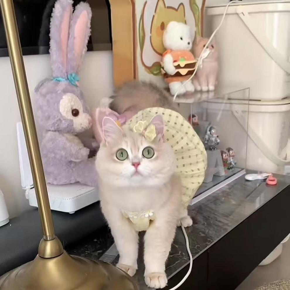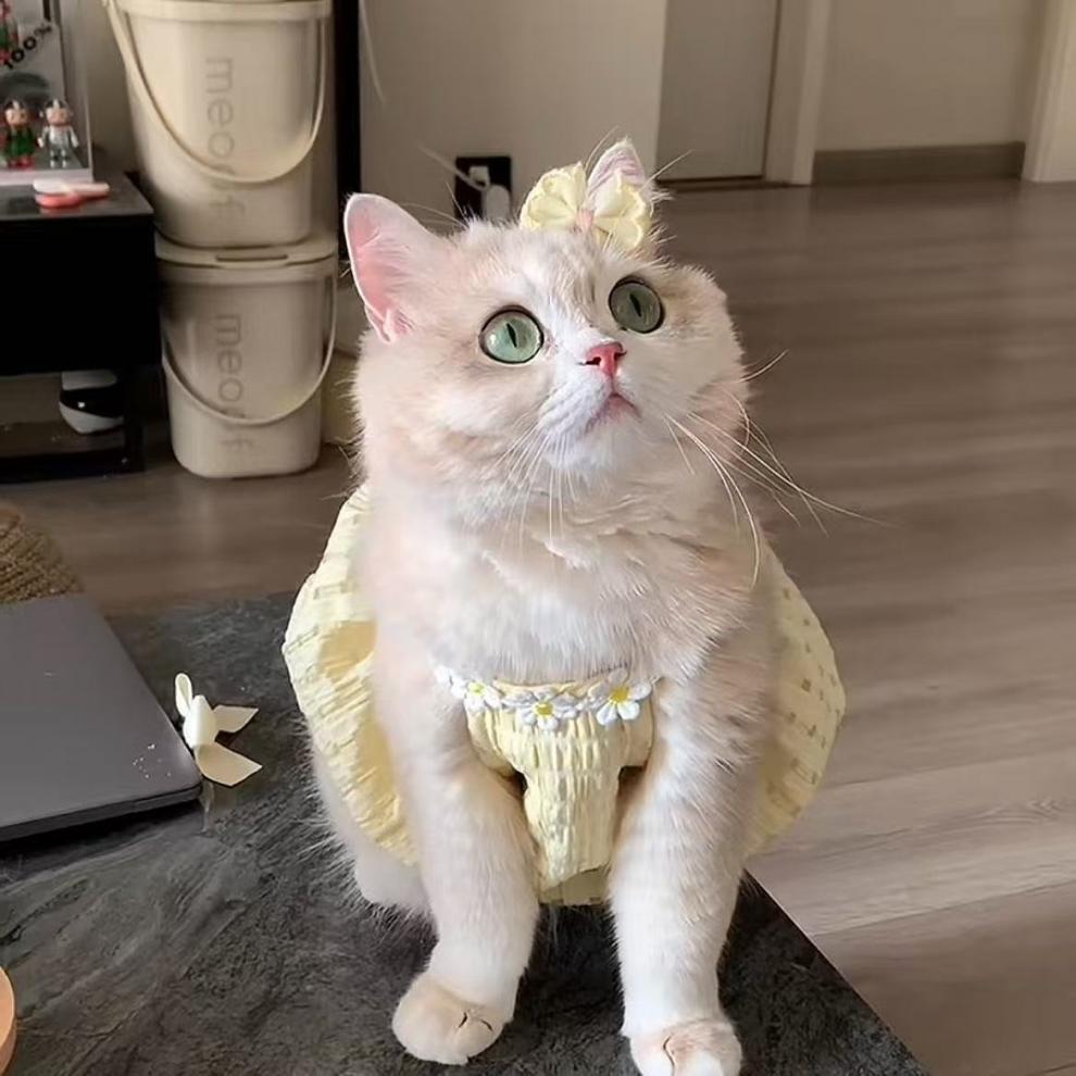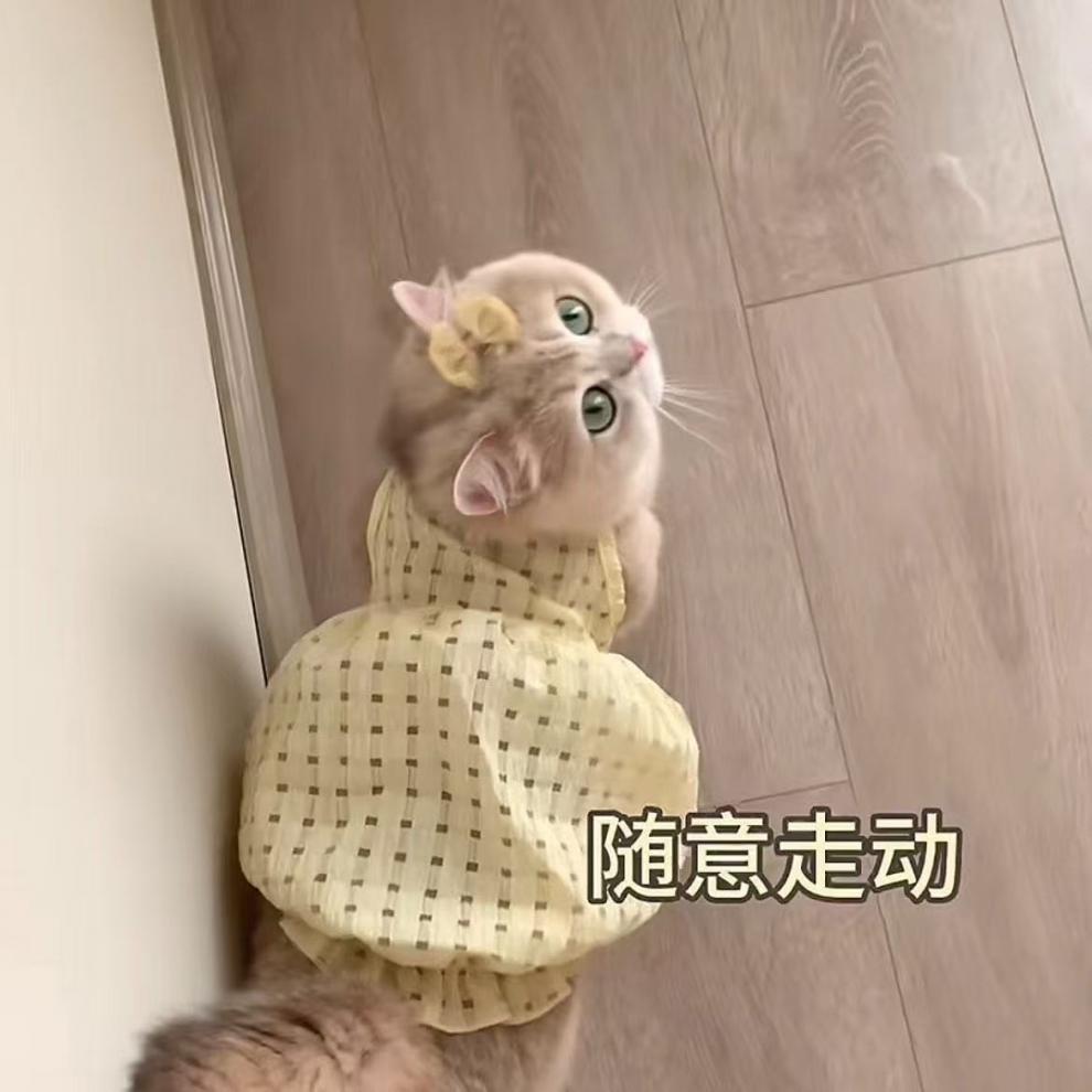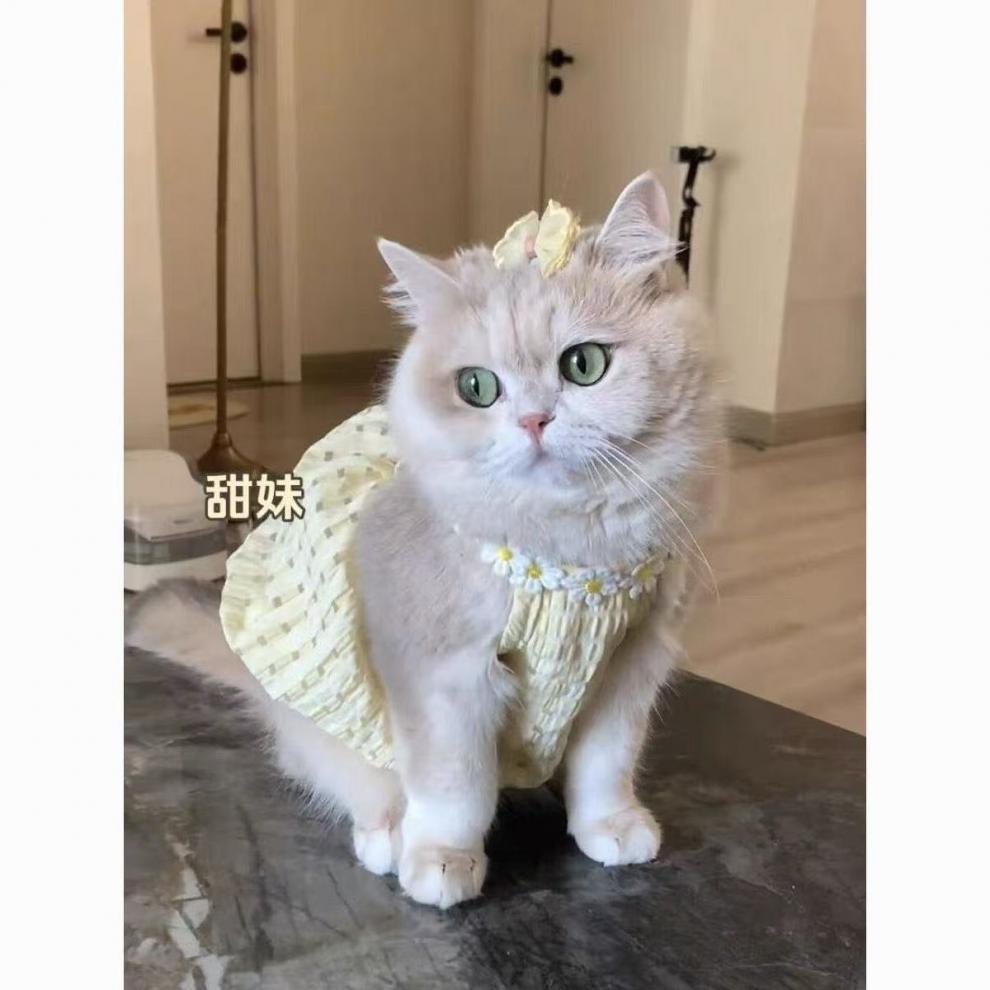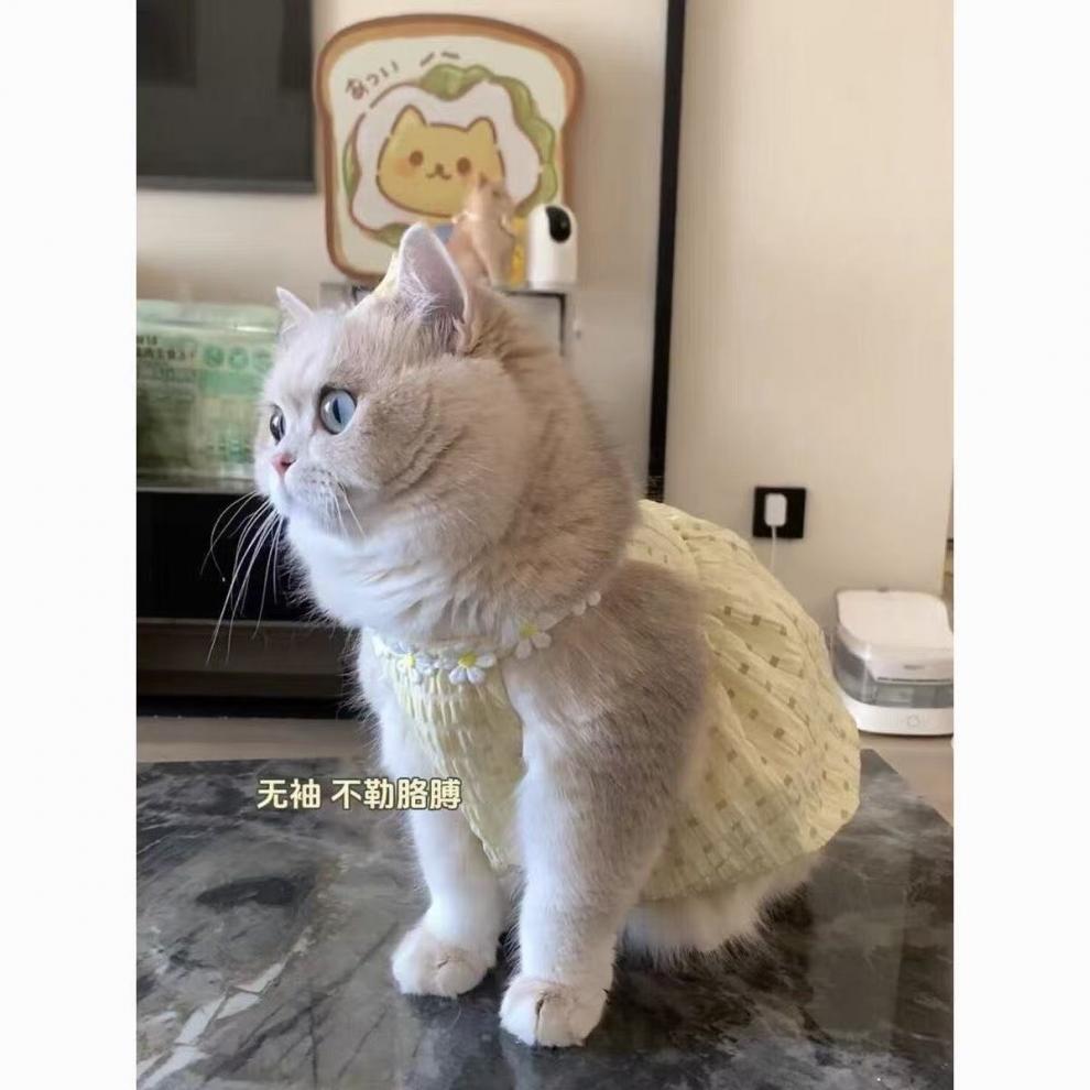 고양이 여름옷, 작은 치마, 털빠짐 방지, 귀여운 인 골드 그라데이션 래그돌 고양이, 브리티시 쇼트헤어 여름 서스펜더 스커트스토어 가기