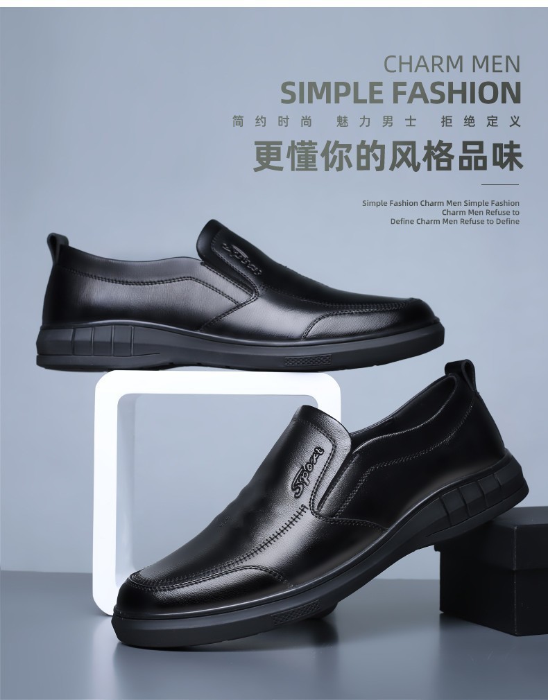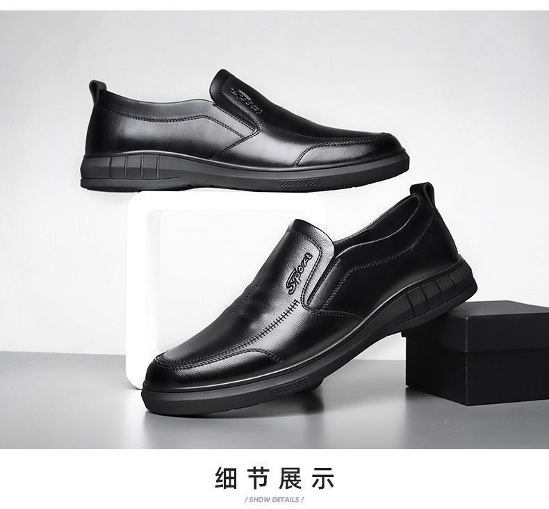 중노년용 가죽신, 영국식 사계절 패션, 부드러운 밑창 슬립온 둥근코 신발, 비즈니스 경량 남성 캐주얼 가죽신스토어 가기