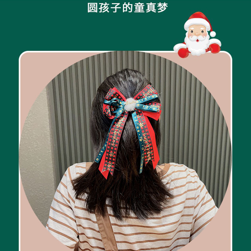 크리스마스 빨간색과 녹색 어린이 액세서리 머리핀 머리 장식 질감 모피 공 활 리본 크로스 보더 소녀 헤어 액세서리