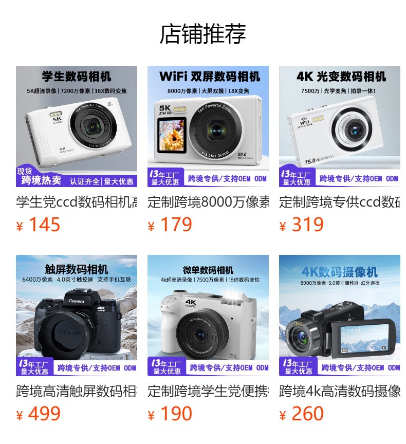 야외 대형 스크린 전체 시야각을 위한 맞춤형 국경 간 4K 학생 소형 엄지 카메라 6400만 픽셀 고화질 촬영스토어 가기
