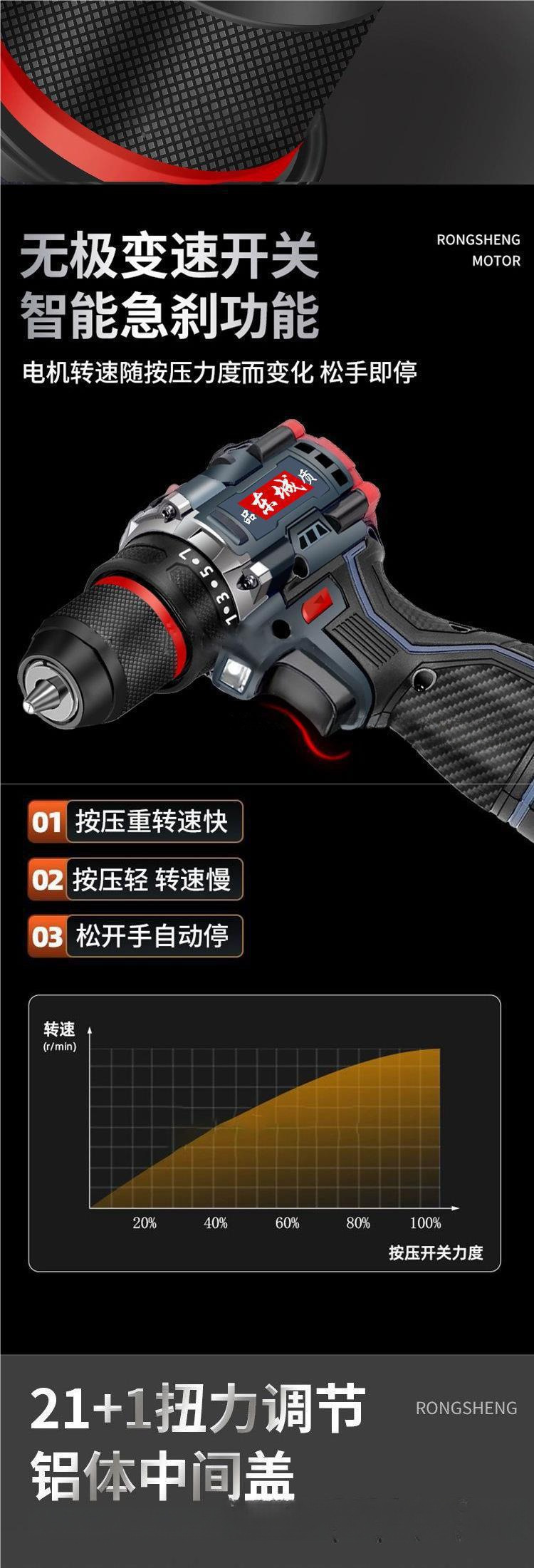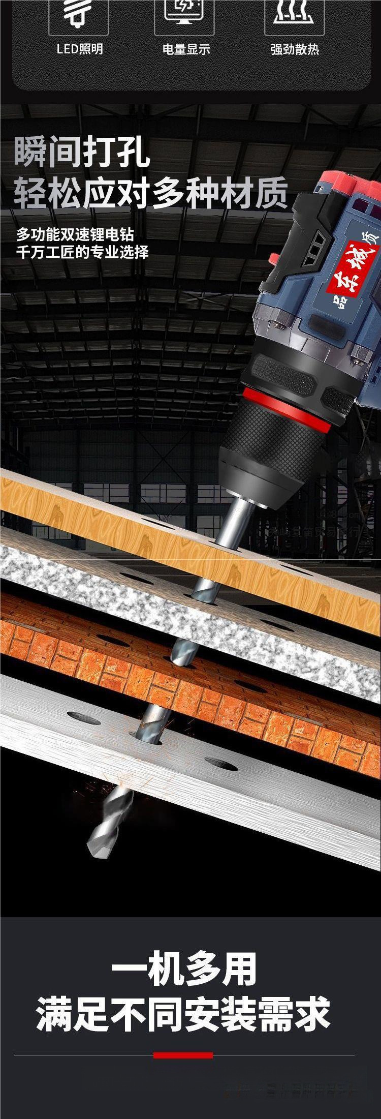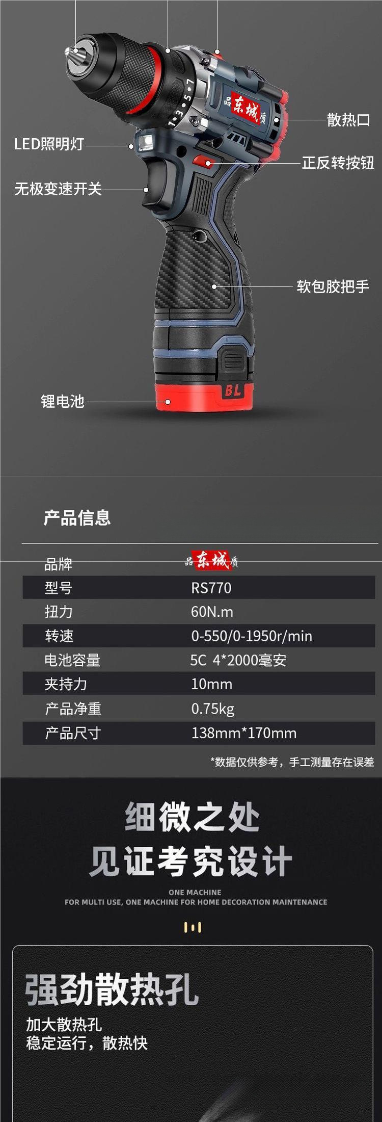 Dongcheng 브러시리스 소형 강철 총 고출력 충전식 드릴 다기능 가정용 핸드 드릴 충전식 전기 드라이버 구리