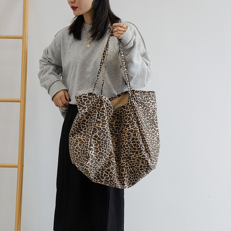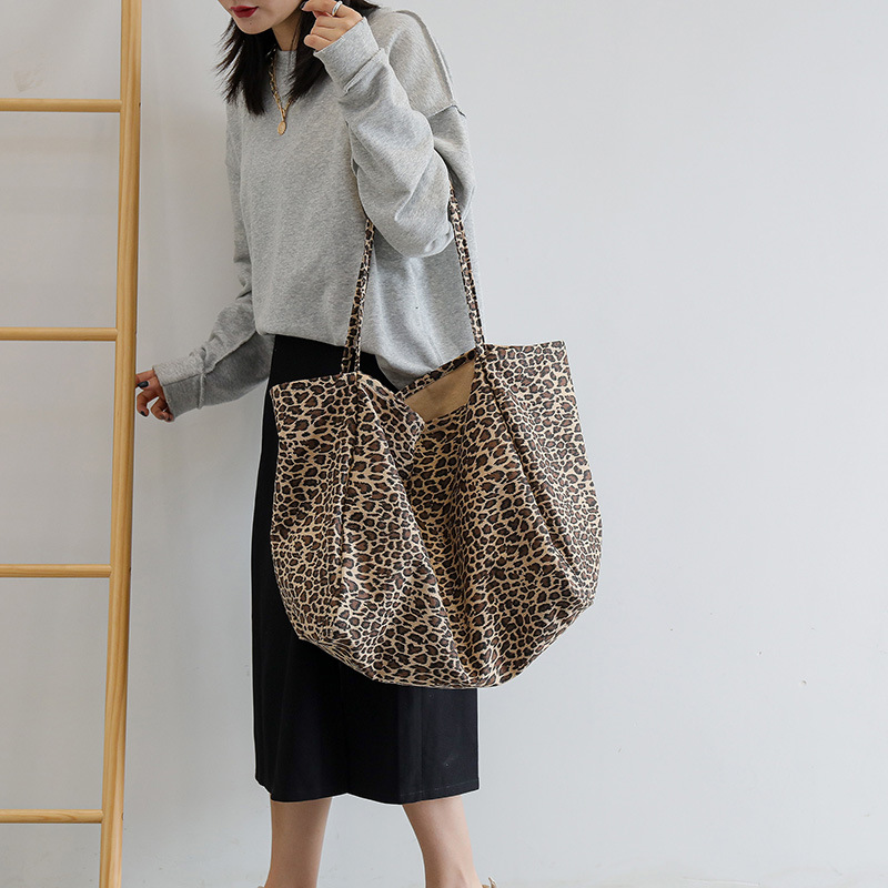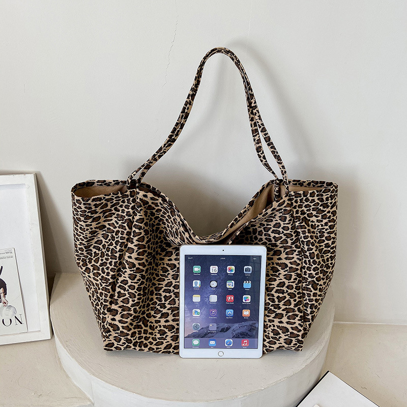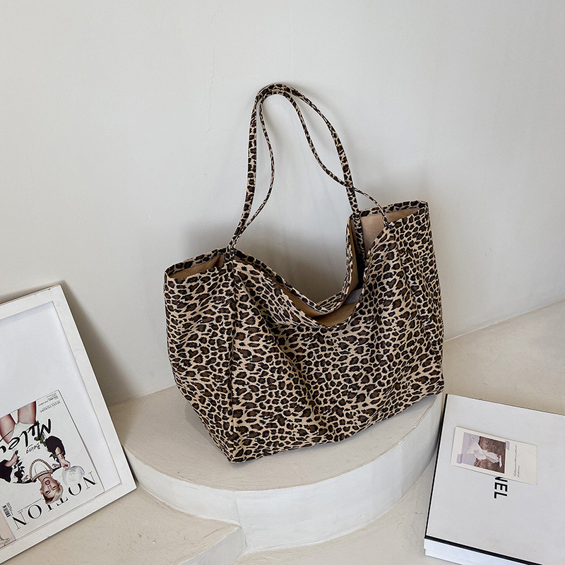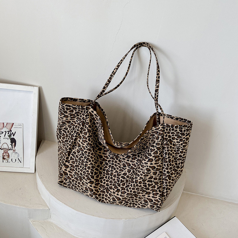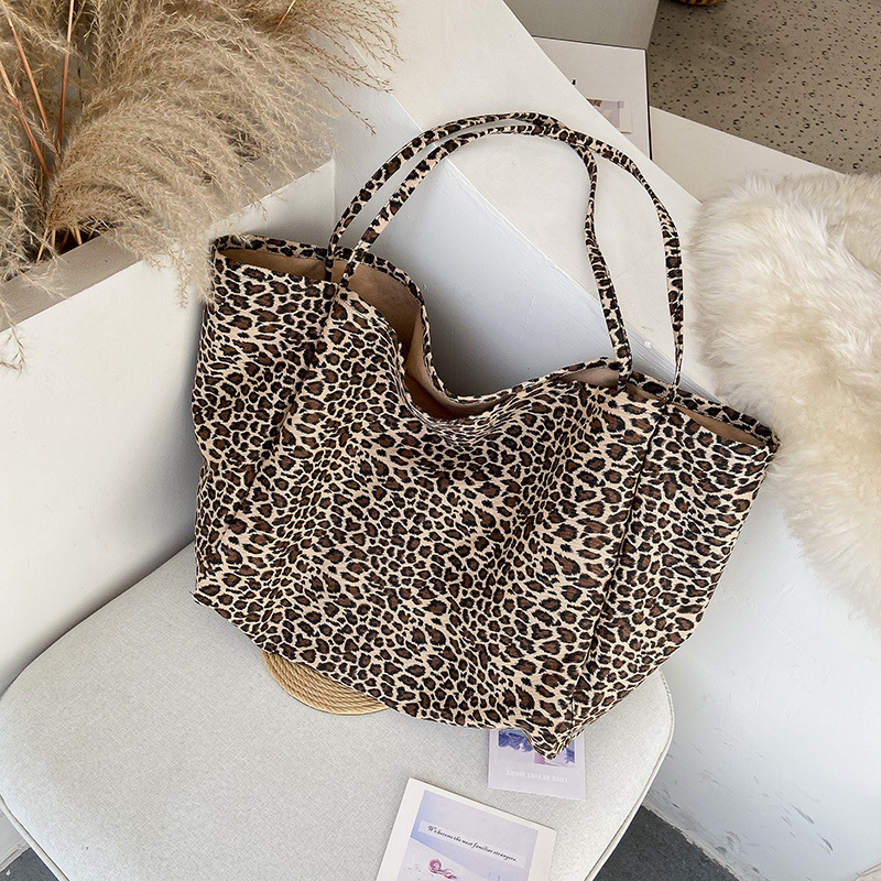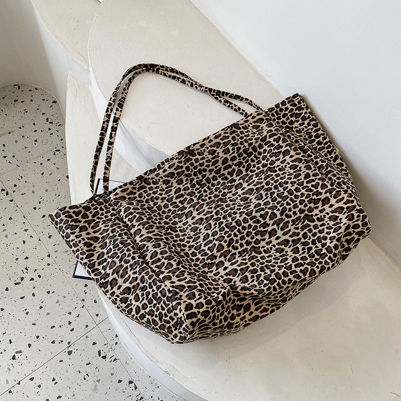 아마존의 인기 레오파드 프린트 숄더백, 레이지 스타일 캐주얼 쇼핑백, 대용량 유럽 및 미국 스타일 겨드랑이 가방 도매스토어 가기