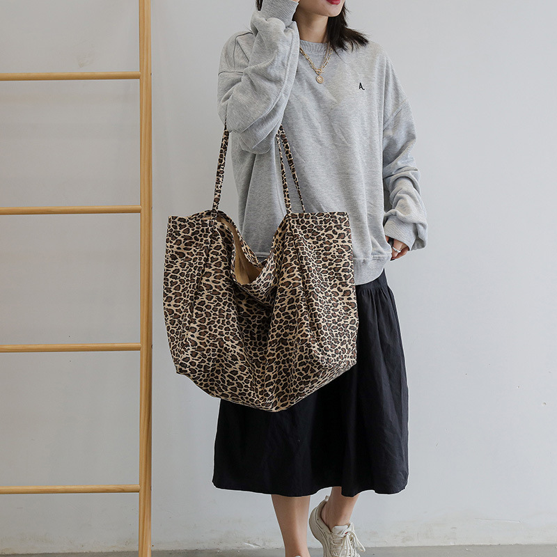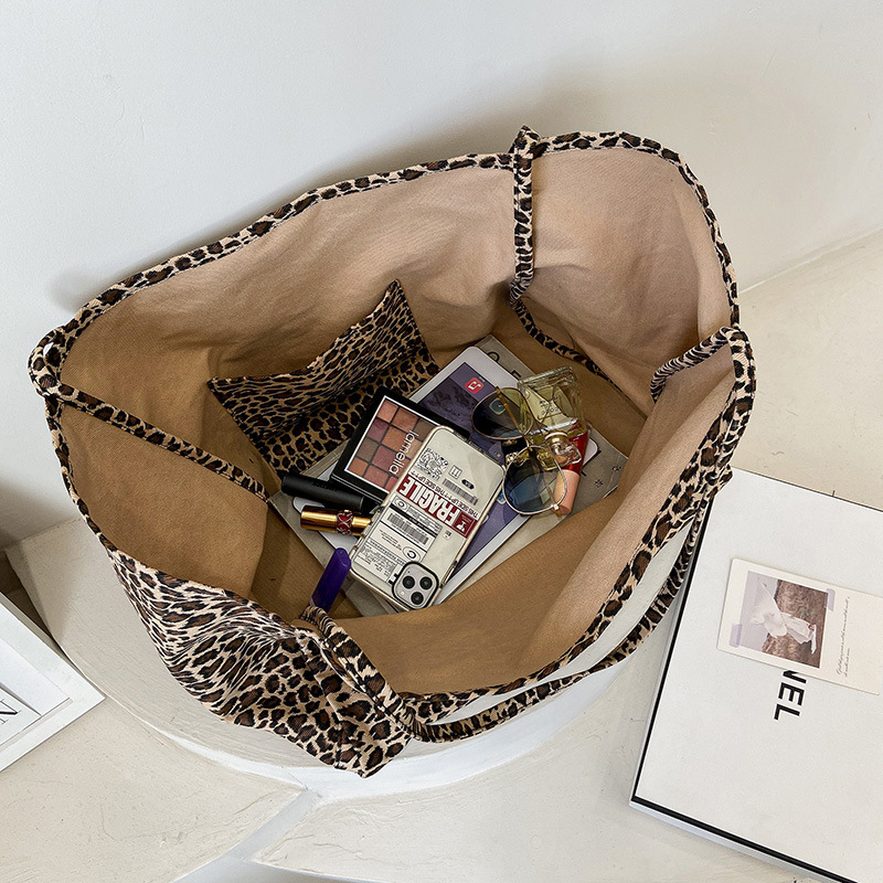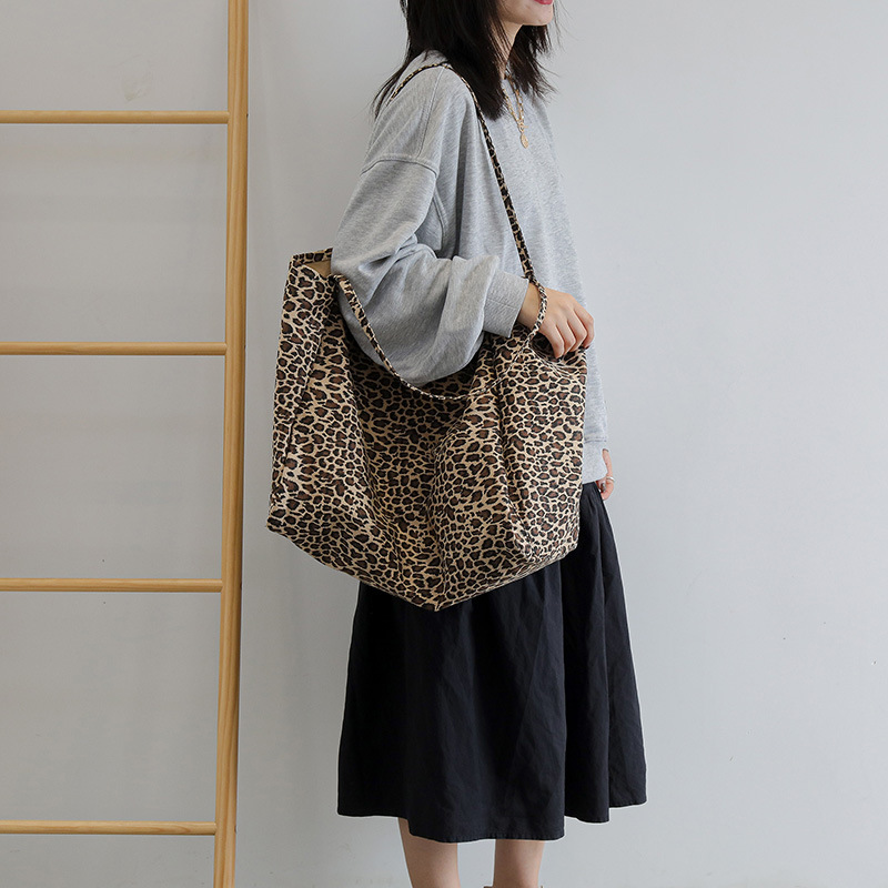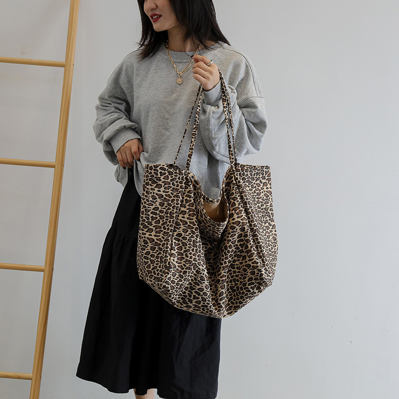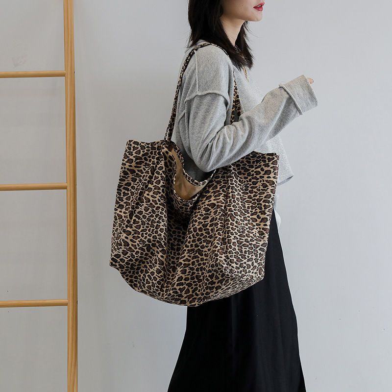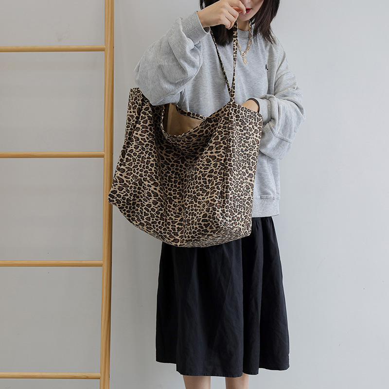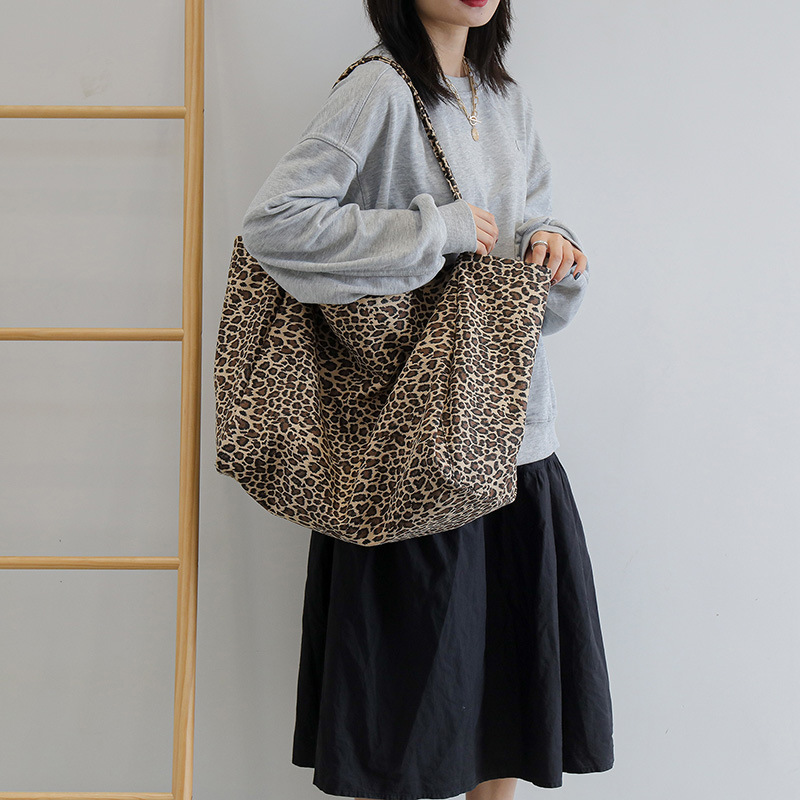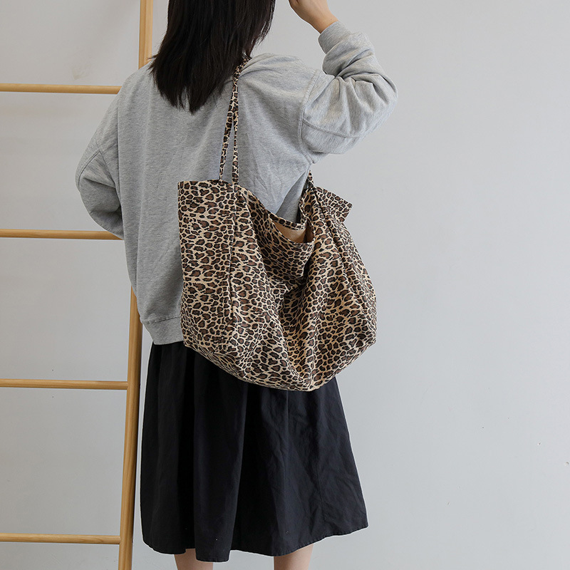 아마존의 인기 레오파드 프린트 숄더백, 레이지 스타일 캐주얼 쇼핑백, 대용량 유럽 및 미국 스타일 겨드랑이 가방 도매스토어 가기