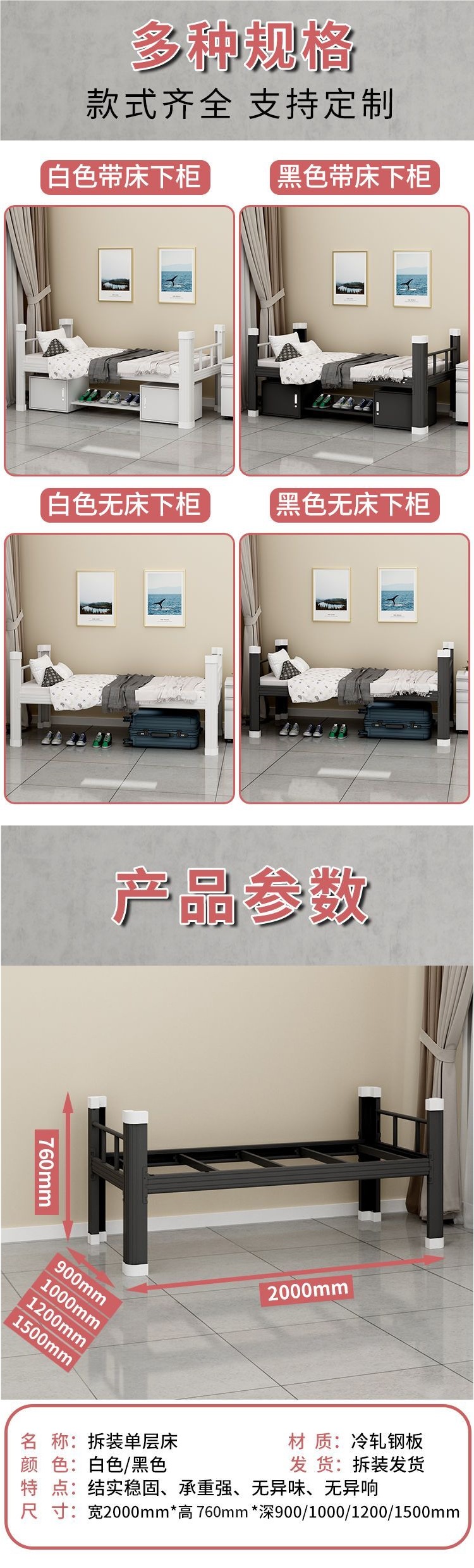 • 매트리스와 침대 밑 수납장이 포함된 100CM 광대역 침대 보드