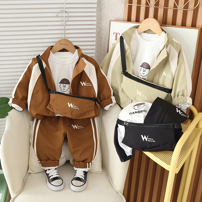 남아 정장 2025 봄 가을 신생아 및 중소형 아동용 다용도 숄더백 재킷 서양식 3피스 세트
