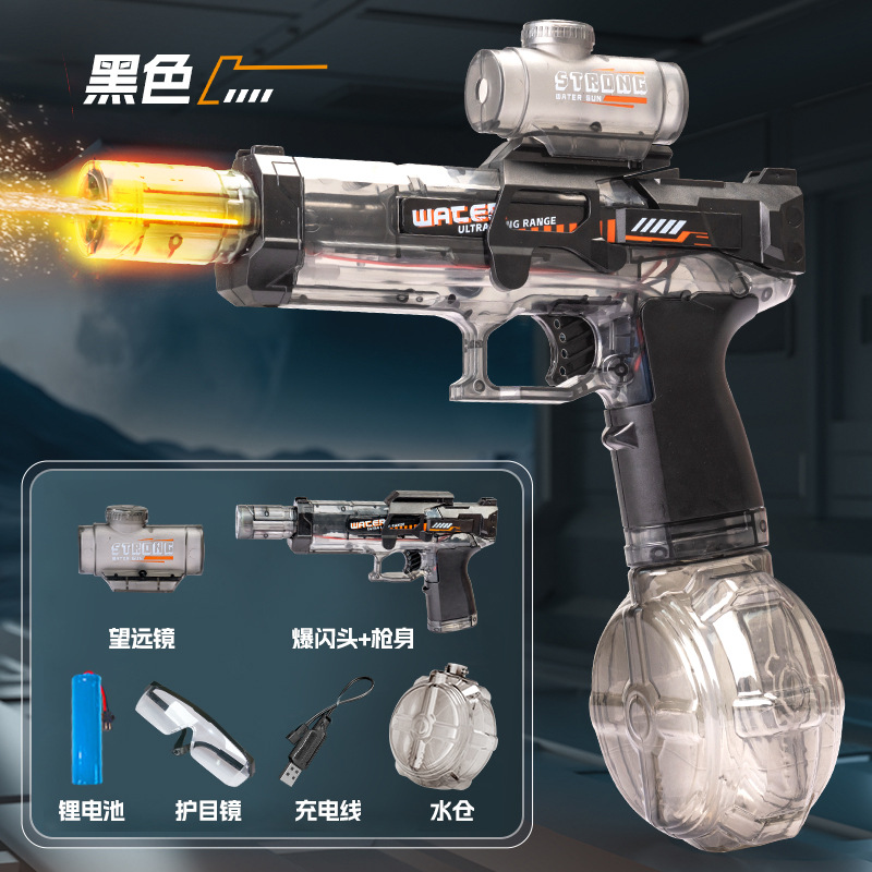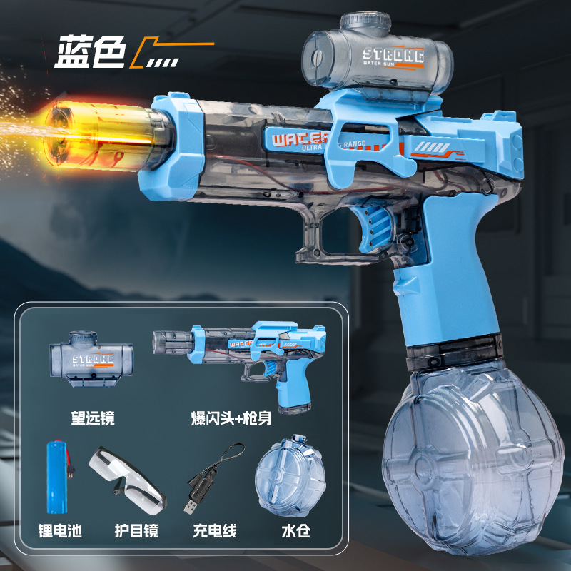 빛과 연속 발사 기능을 갖춘 장거리 전기 물총, 어린이 장난감, 대용량 드럼 물총 펄스