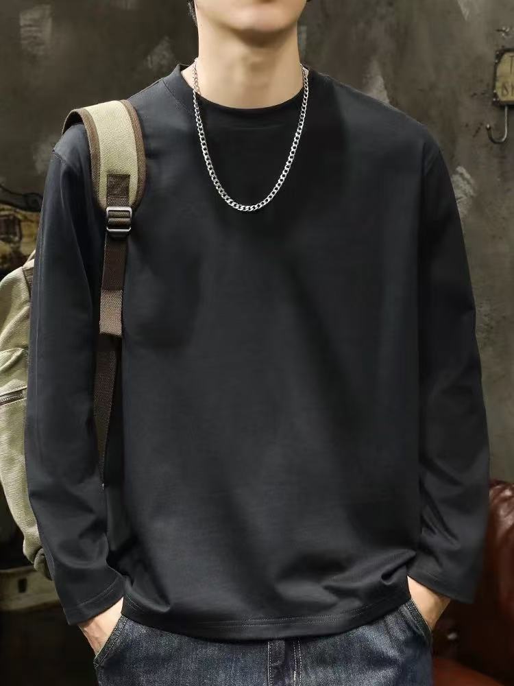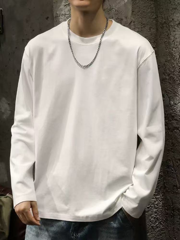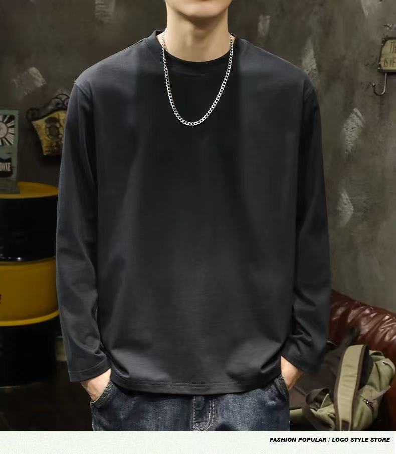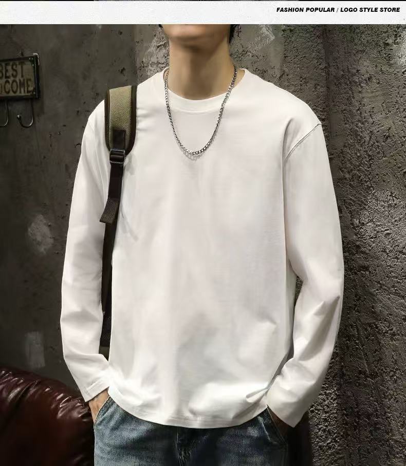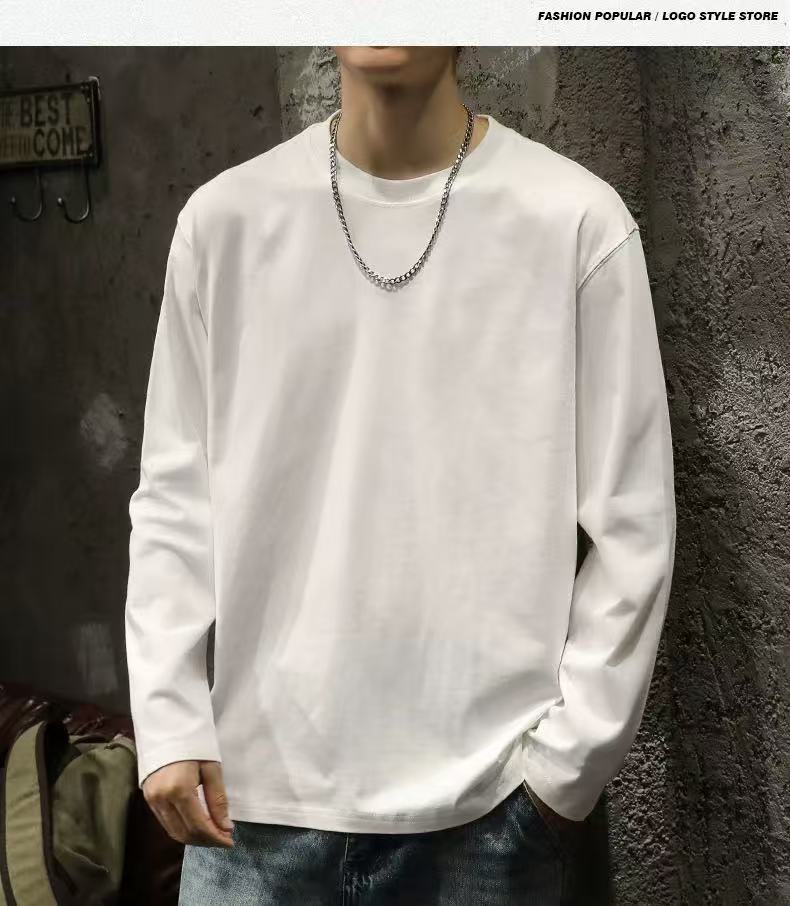 남성용 긴팔 티셔츠 홍콩 스타일 신작 봄, 가을 헤비급 순면 루즈 티셔츠 이너 레이어드 셔츠 솔리드 컬러 탑스토어 가기