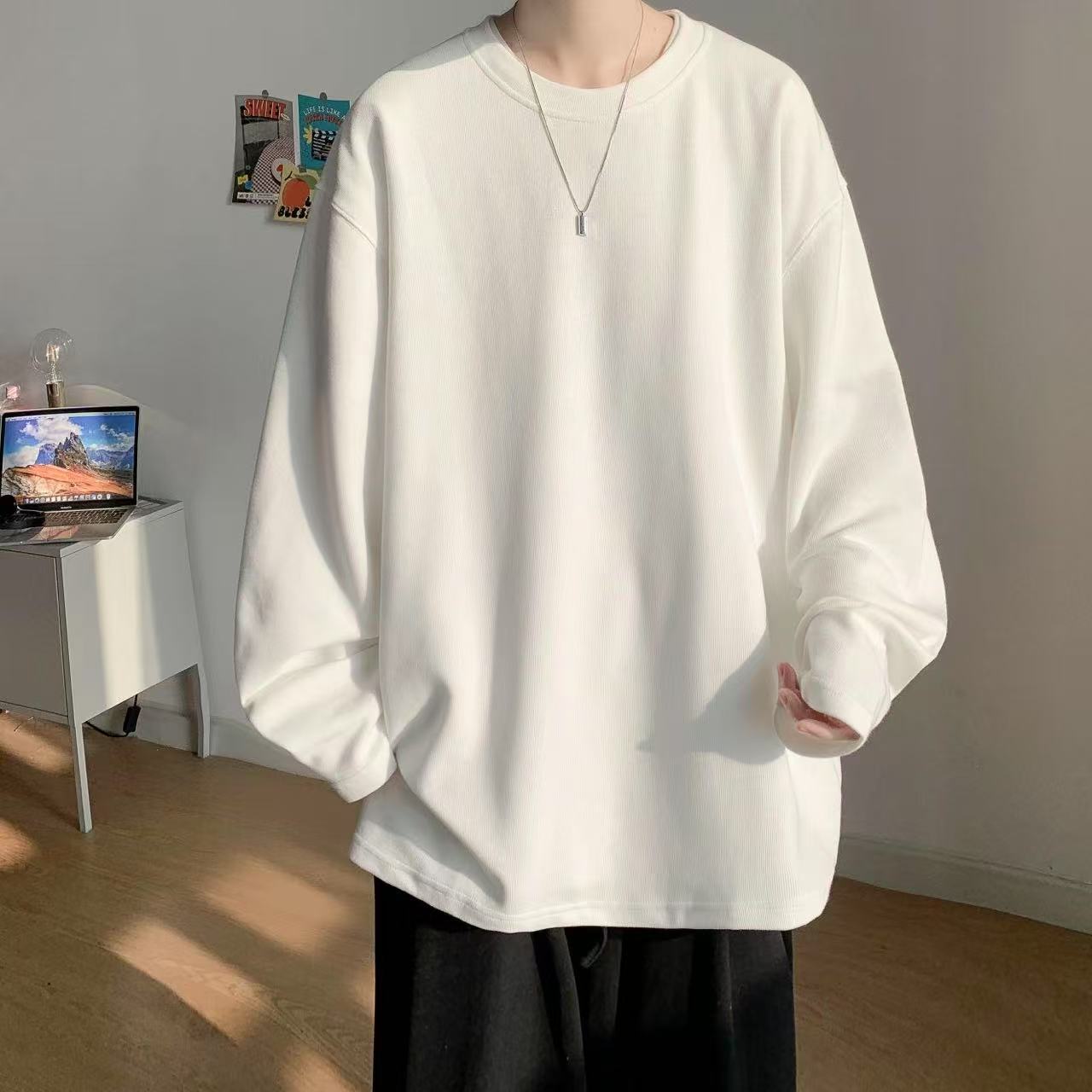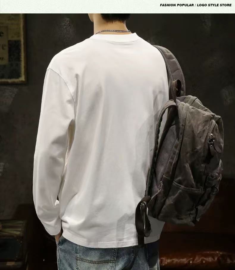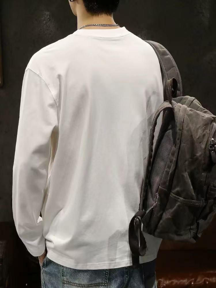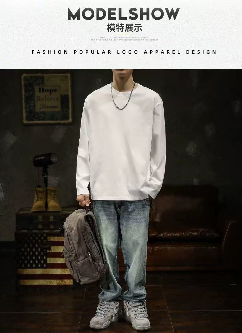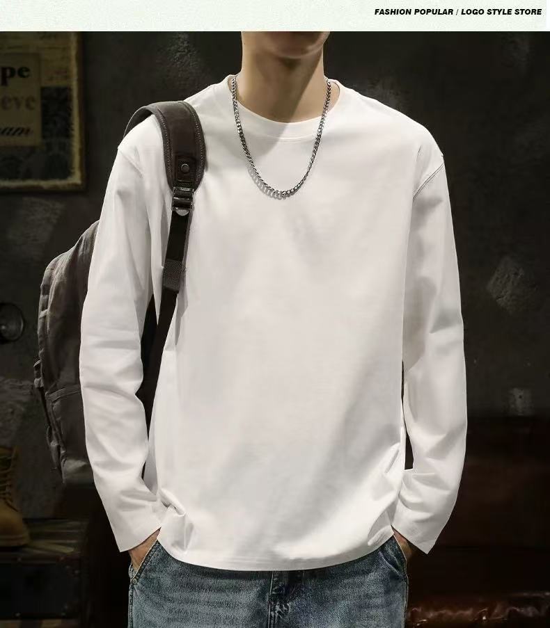 남성용 긴팔 티셔츠 홍콩 스타일 신작 봄, 가을 헤비급 순면 루즈 티셔츠 이너 레이어드 셔츠 솔리드 컬러 탑스토어 가기