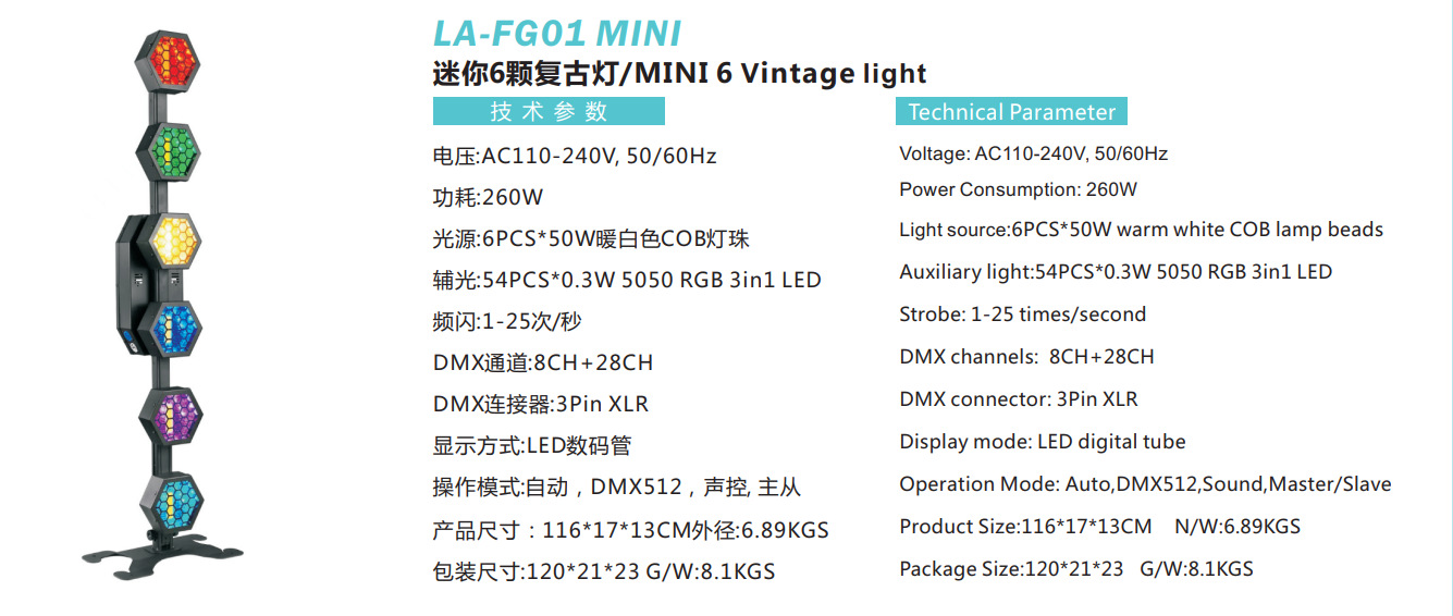 6개의 수직 복고풍 조명, 플래시 조명, 바 배경 무대 조명, 분위기 착색 LED 표면 조명, 픽셀 조명