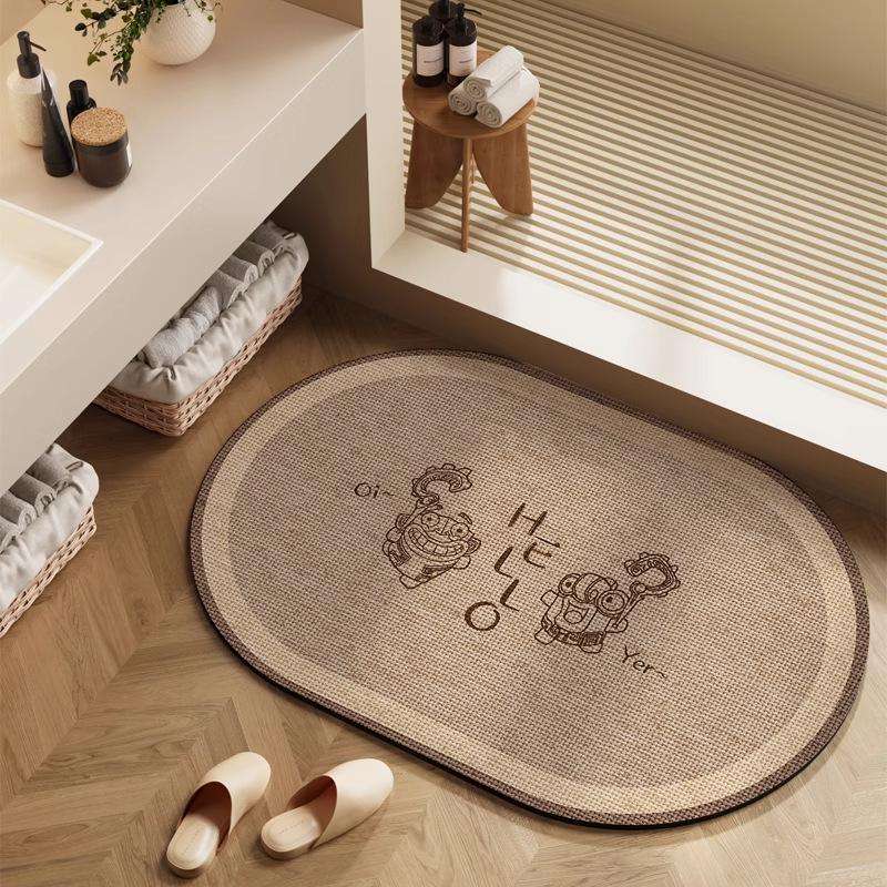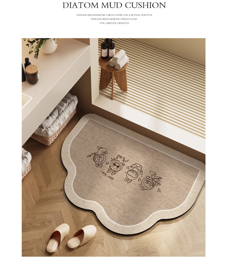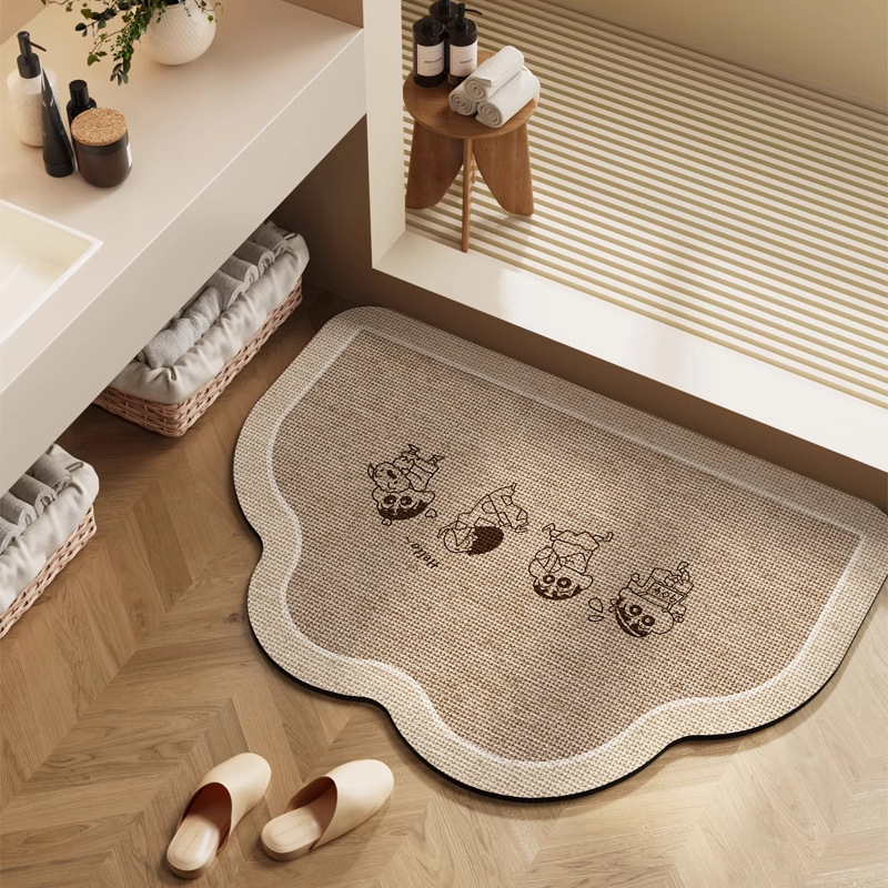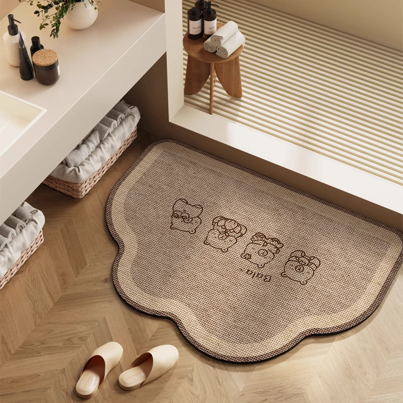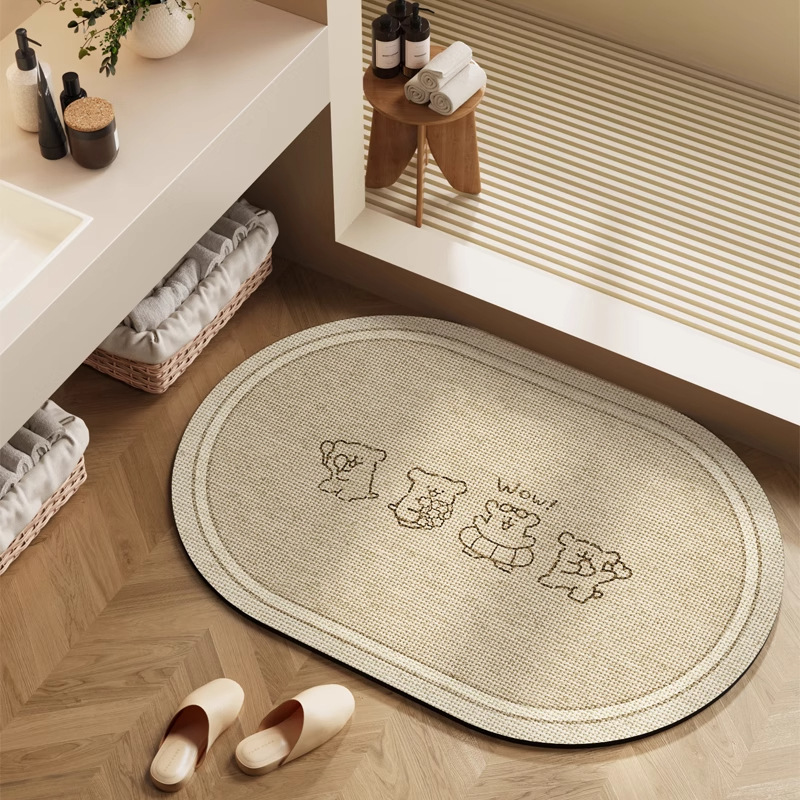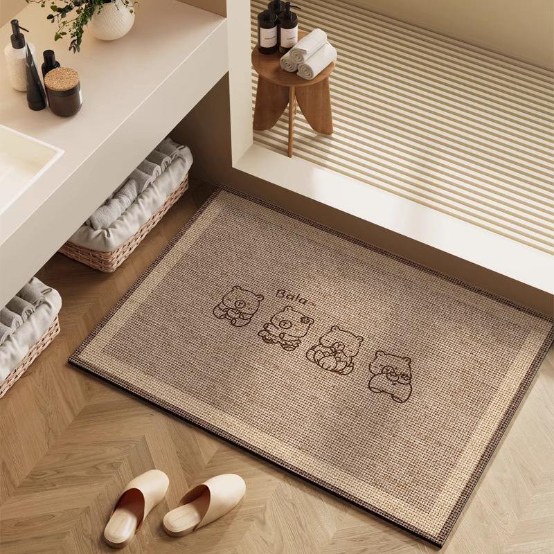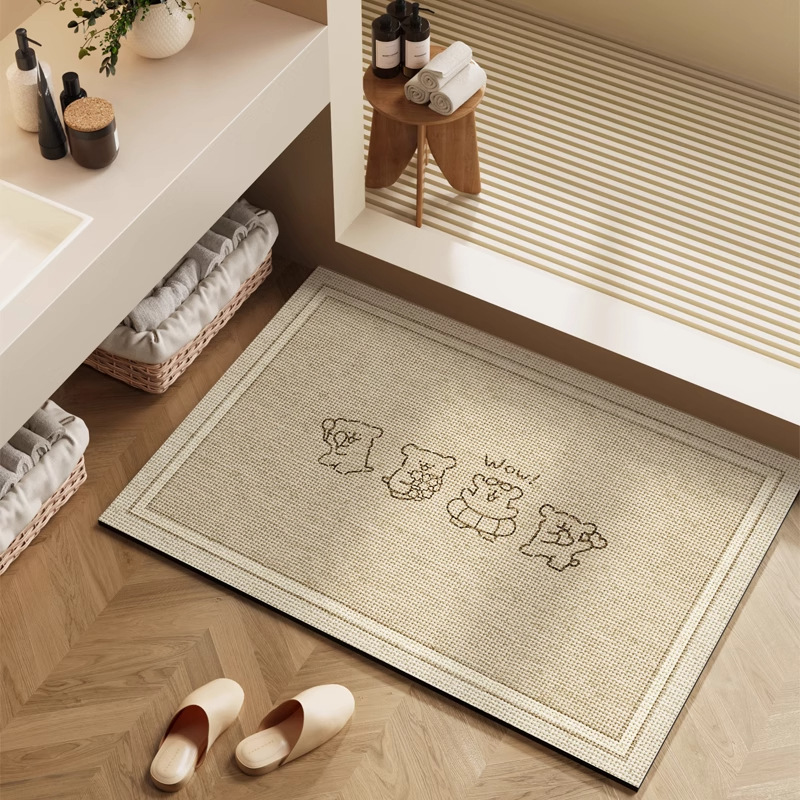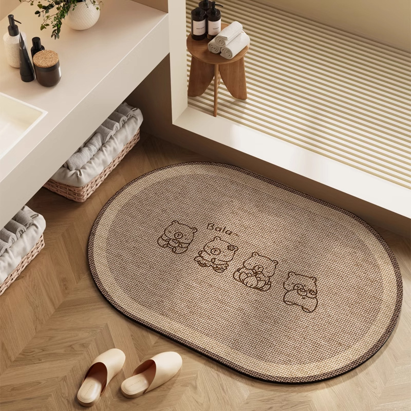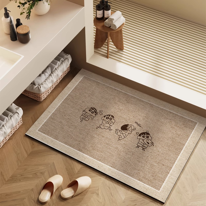 만화 나무 질감 욕실 바닥 매트, 흡수성, 속건성, 규조토 진흙 부드러운 매트, 얼룩 방지 및 관리가 쉬운 욕실 미끄럼 방지 매트