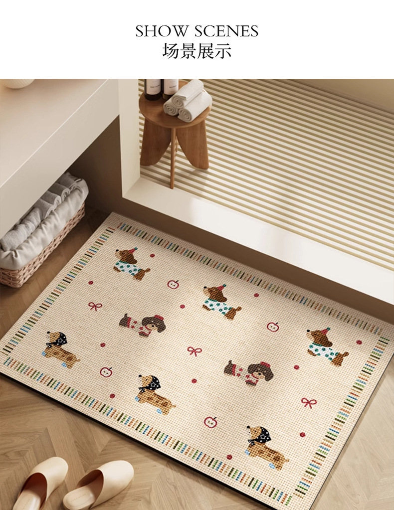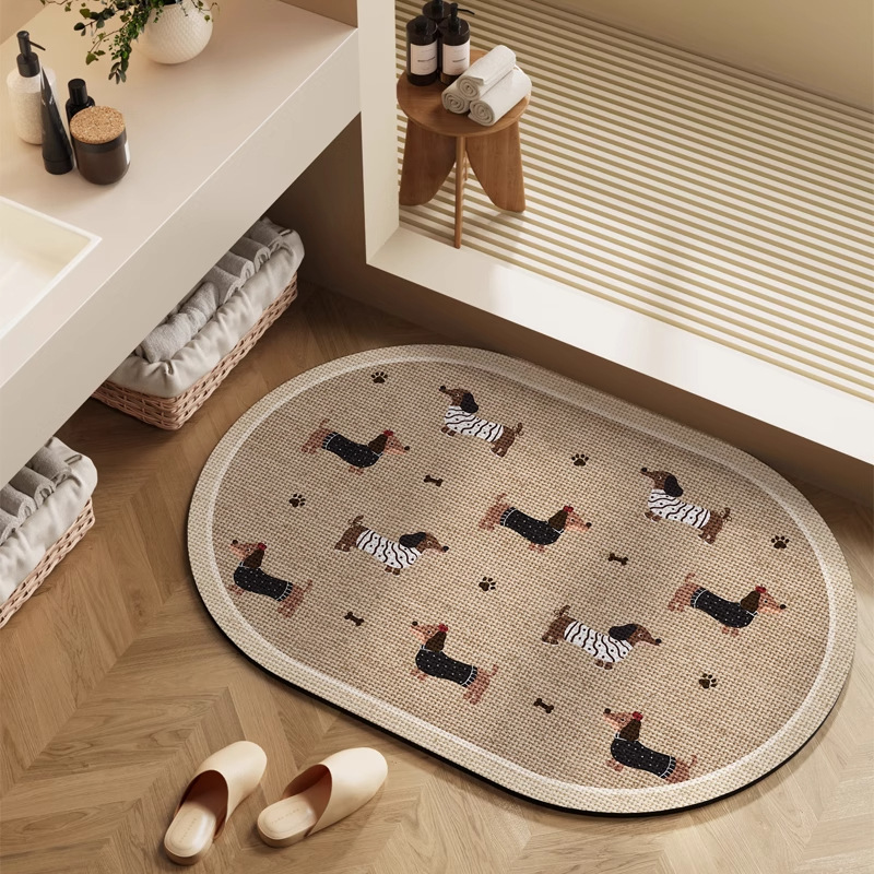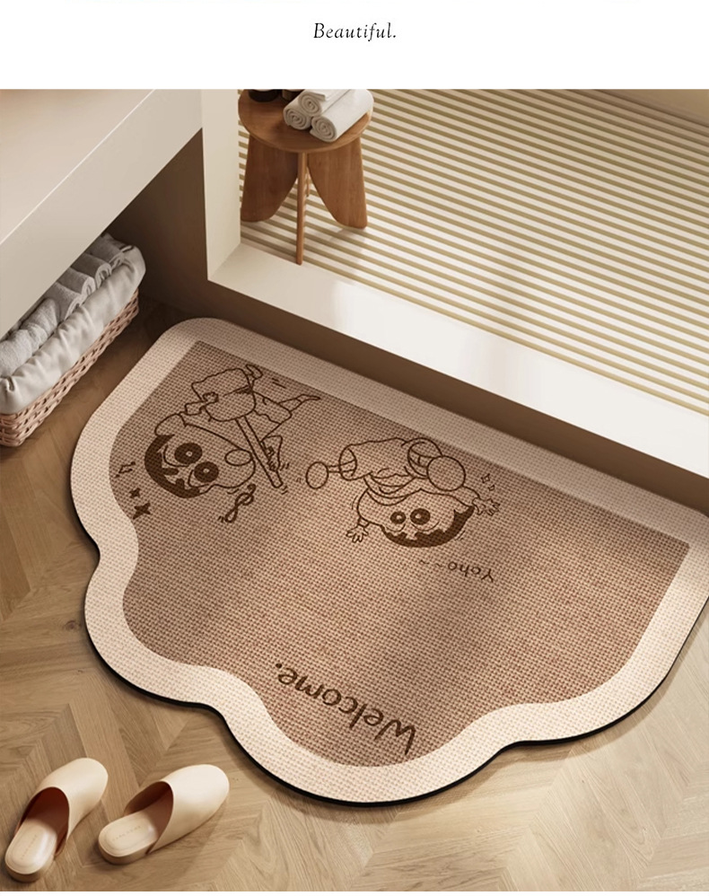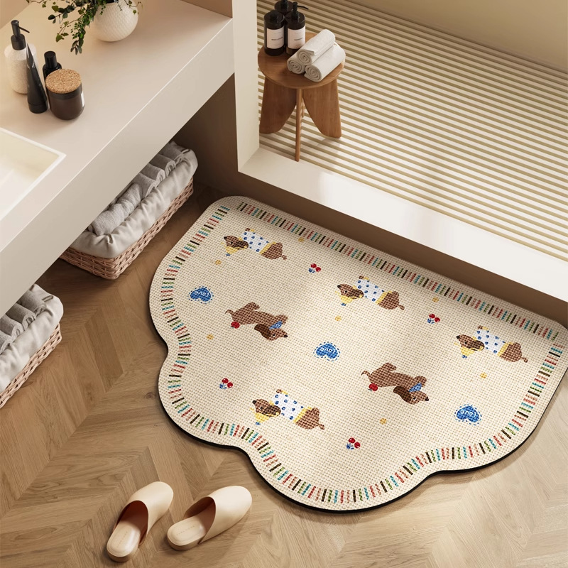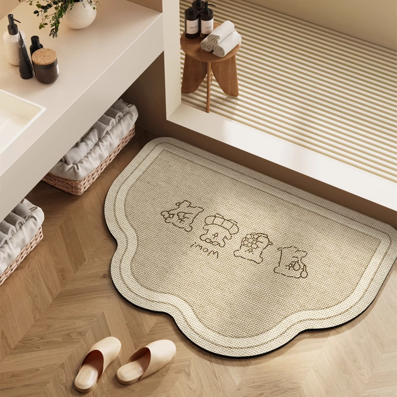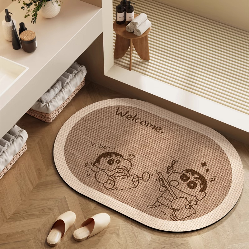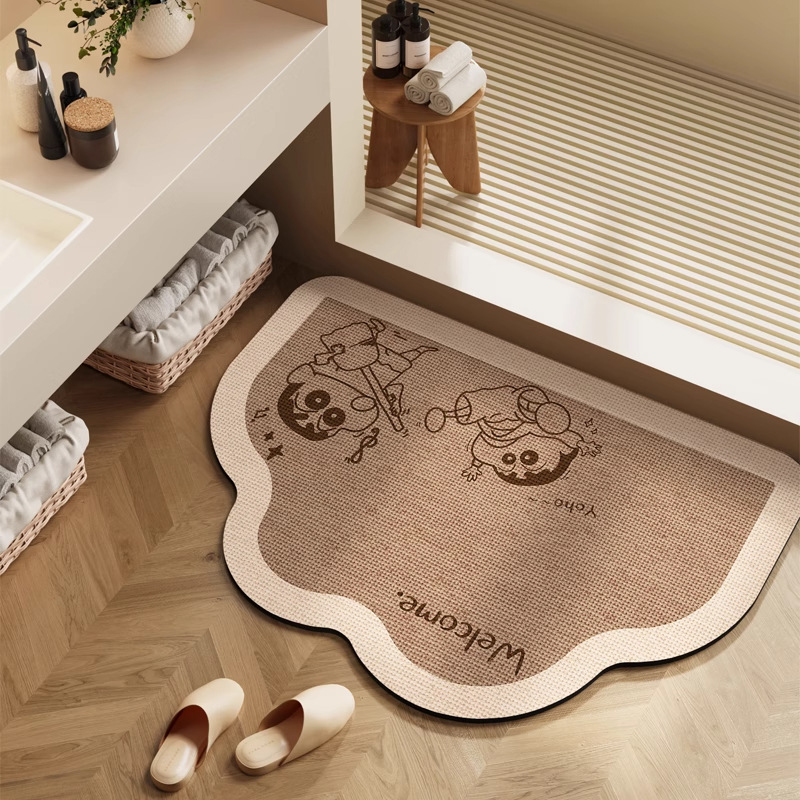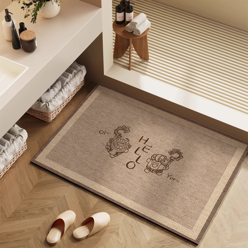 만화 나무 질감 욕실 바닥 매트, 흡수성, 속건성, 규조토 진흙 부드러운 매트, 얼룩 방지 및 관리가 쉬운 욕실 미끄럼 방지 매트
