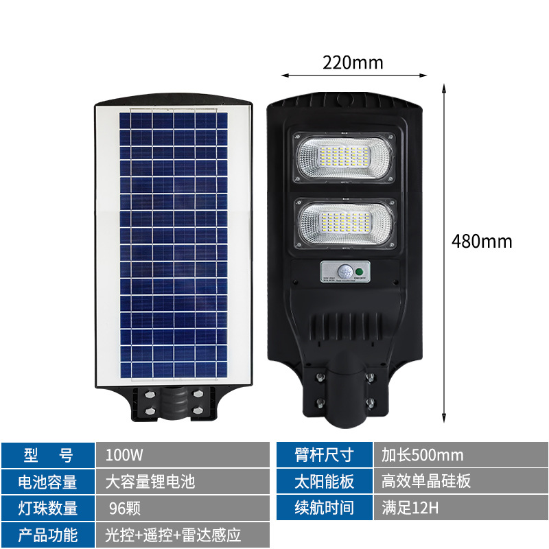 • 가로등 + 1000W 고휘도 모델 [램프 비즈 288개] + 대형 태양광 패널