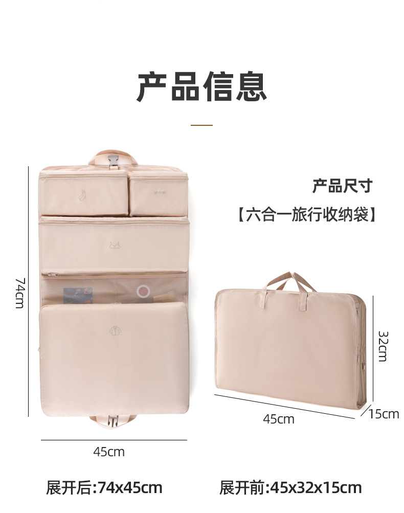여행용 수납 가방 6-in-1 의류 수납 가방 가방 정리 가방 접이식 속옷 포장 수납 가방