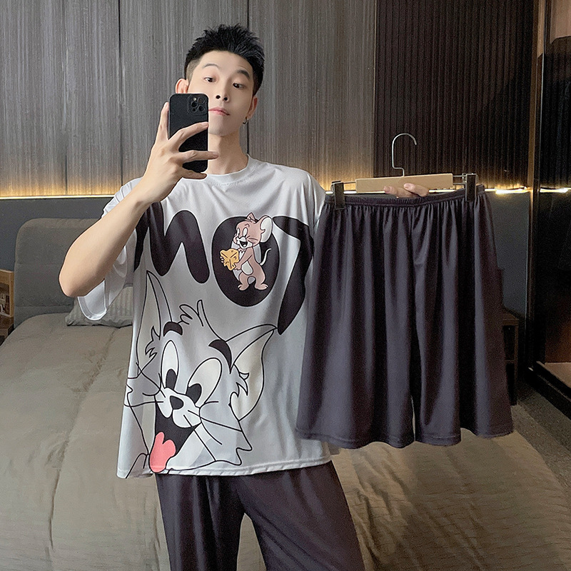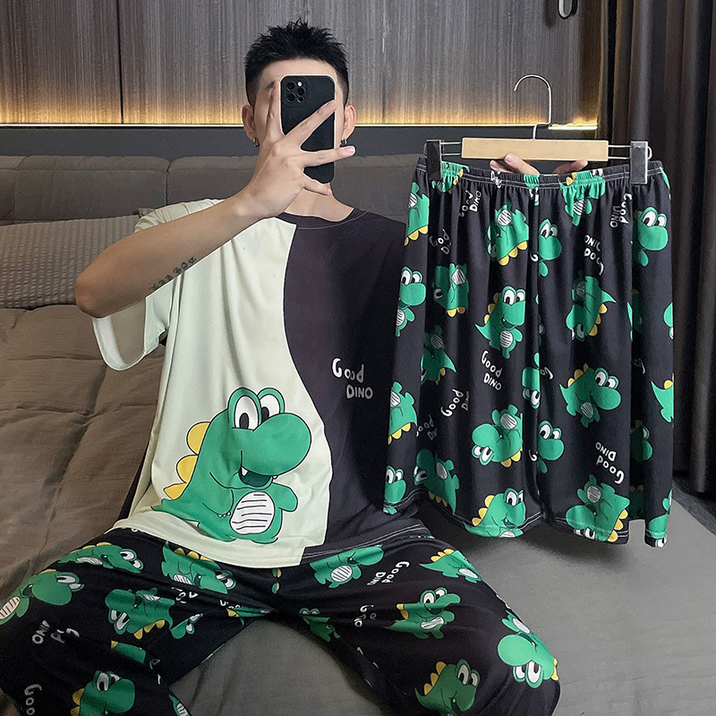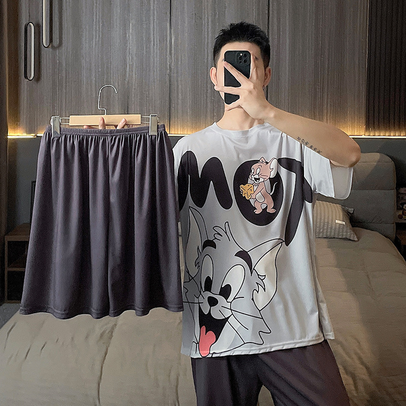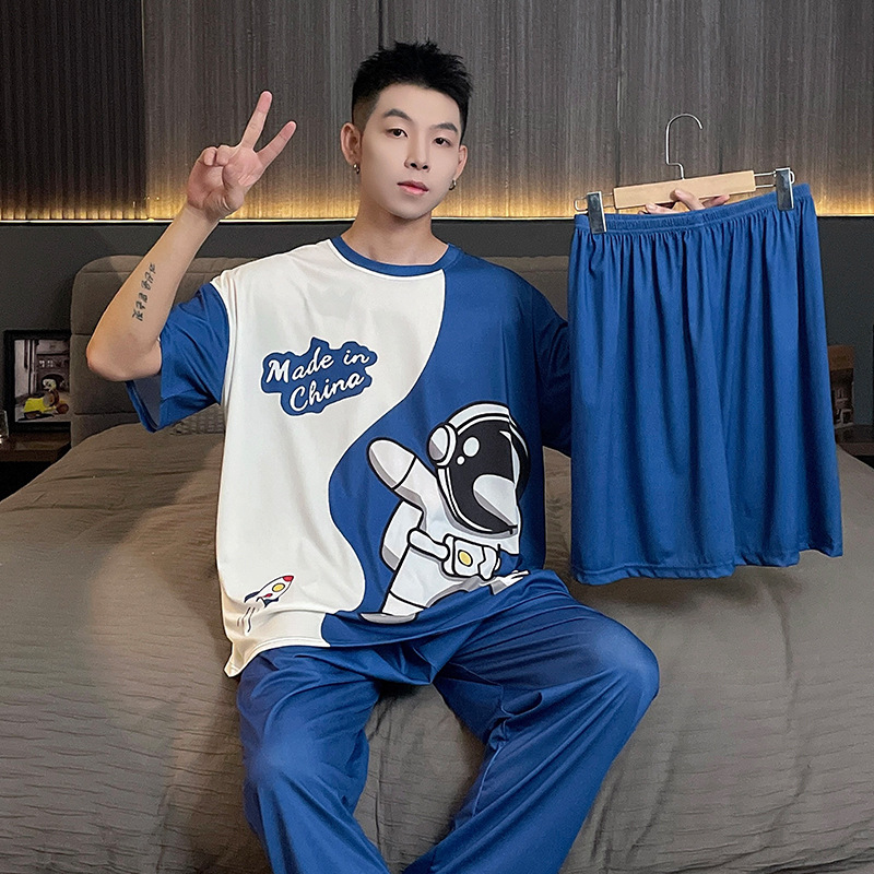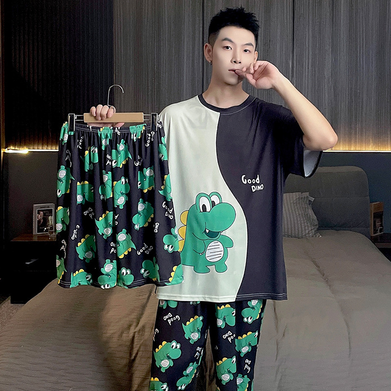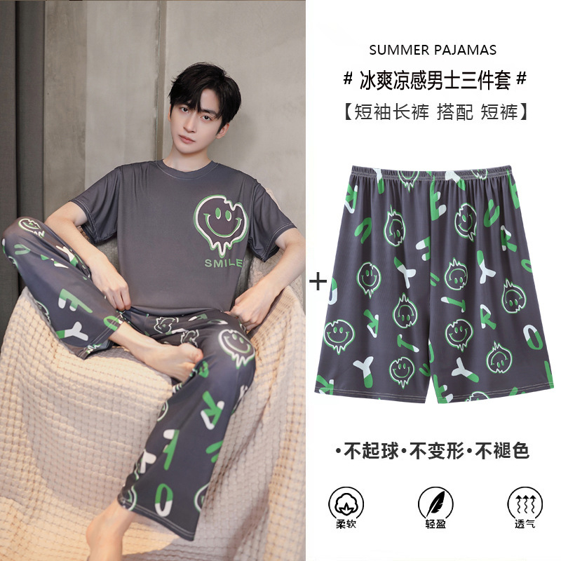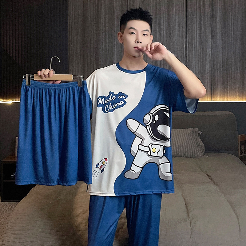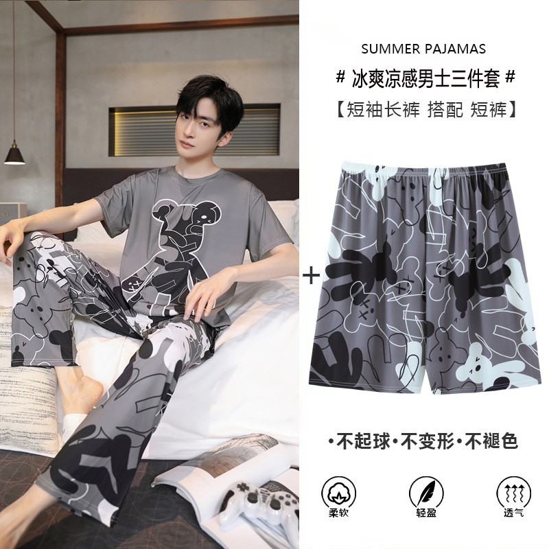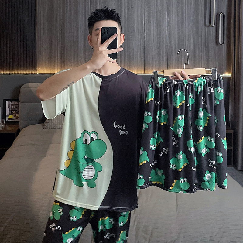 뉴 플러스 사이즈 남성 의류 40-150kg 아이스 실크 라운드 넥 3피스 시리즈