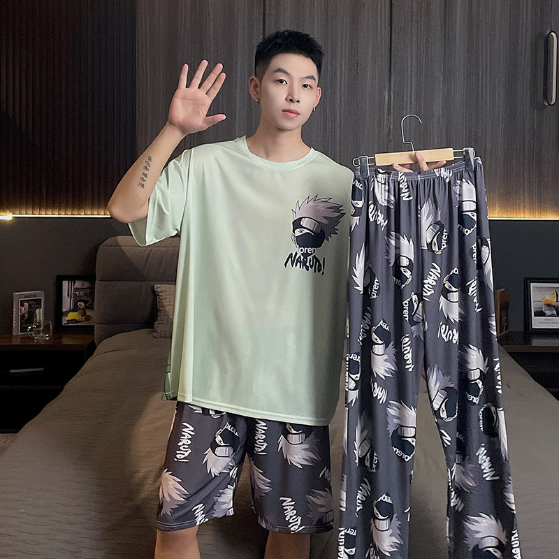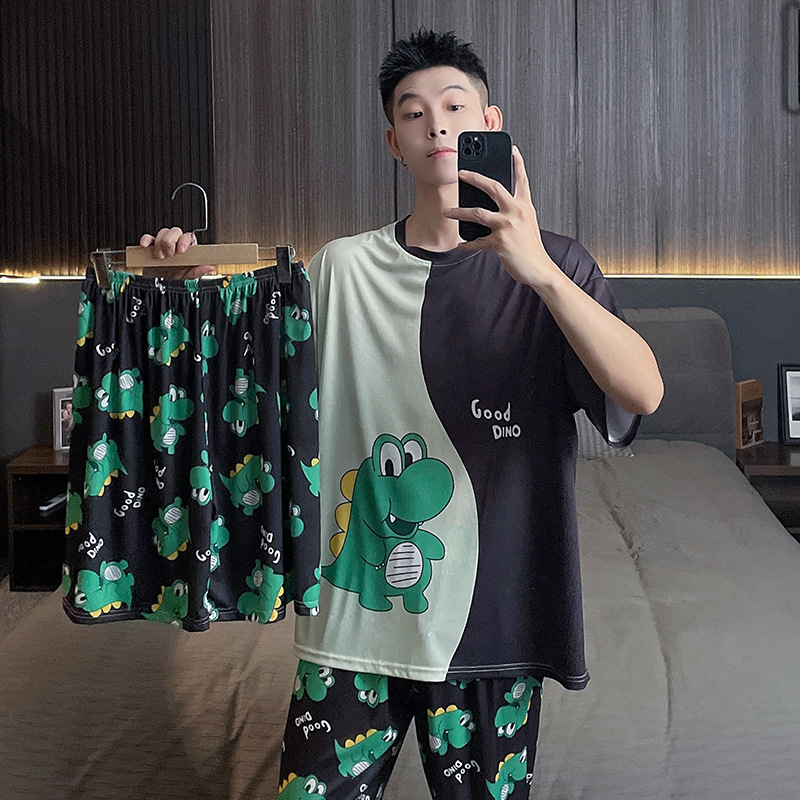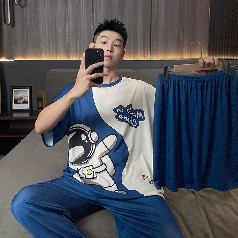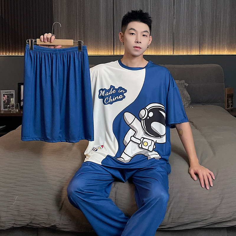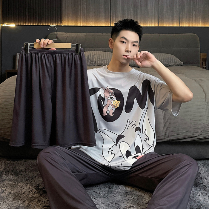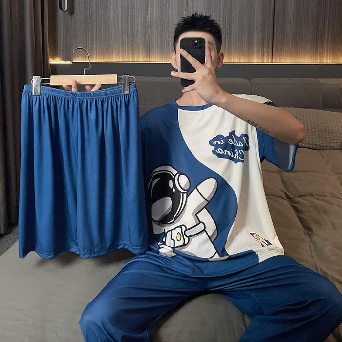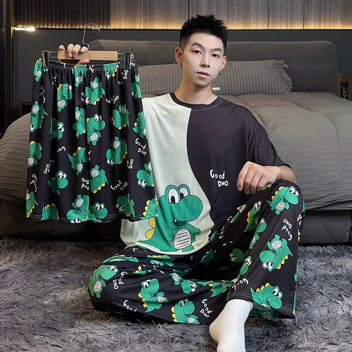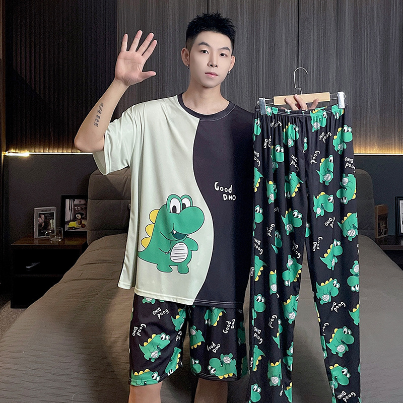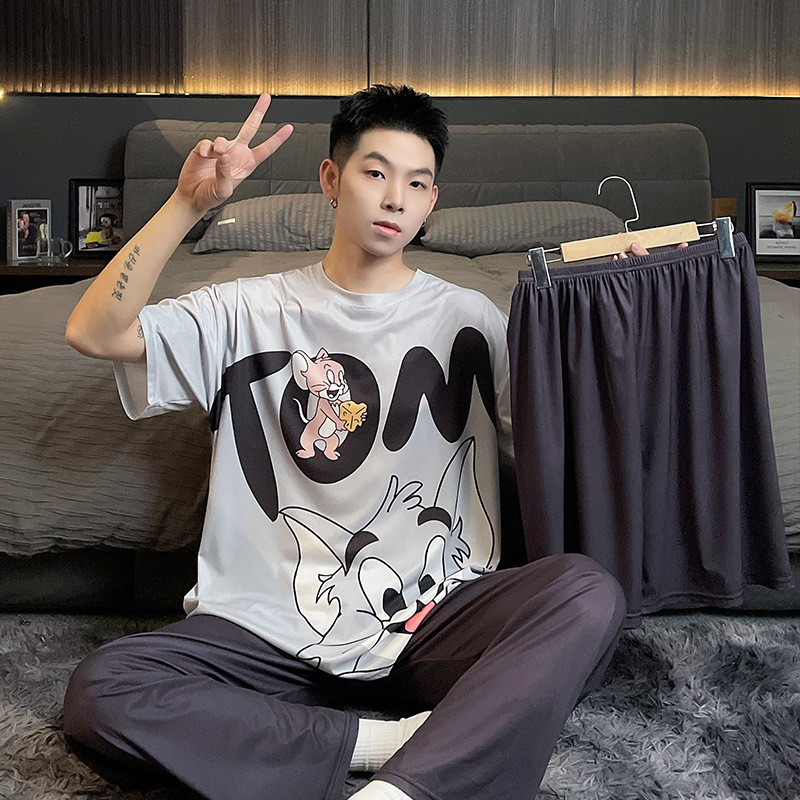 뉴 플러스 사이즈 남성 의류 40-150kg 아이스 실크 라운드 넥 3피스 시리즈
