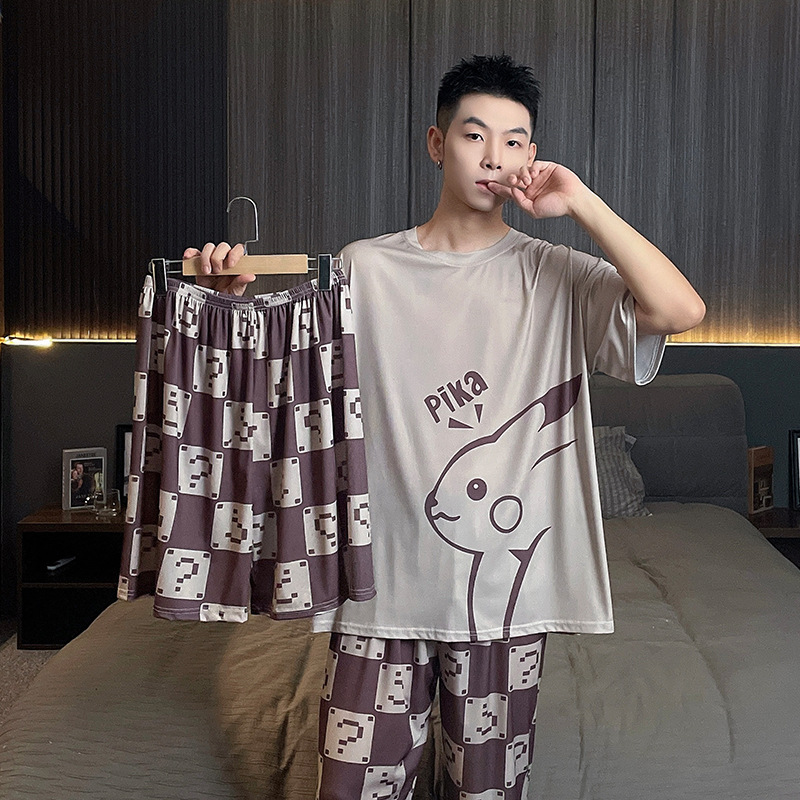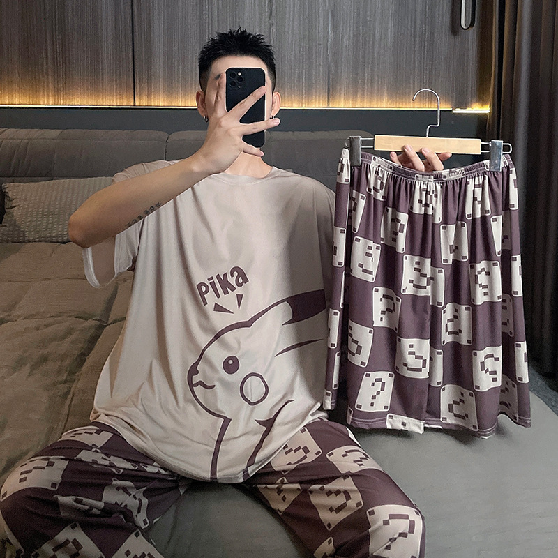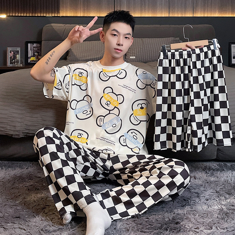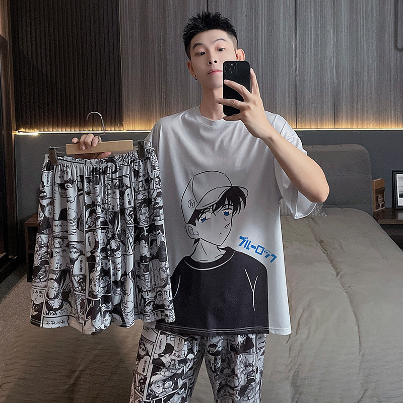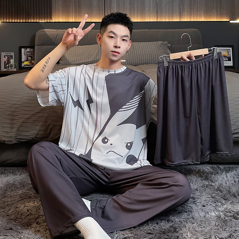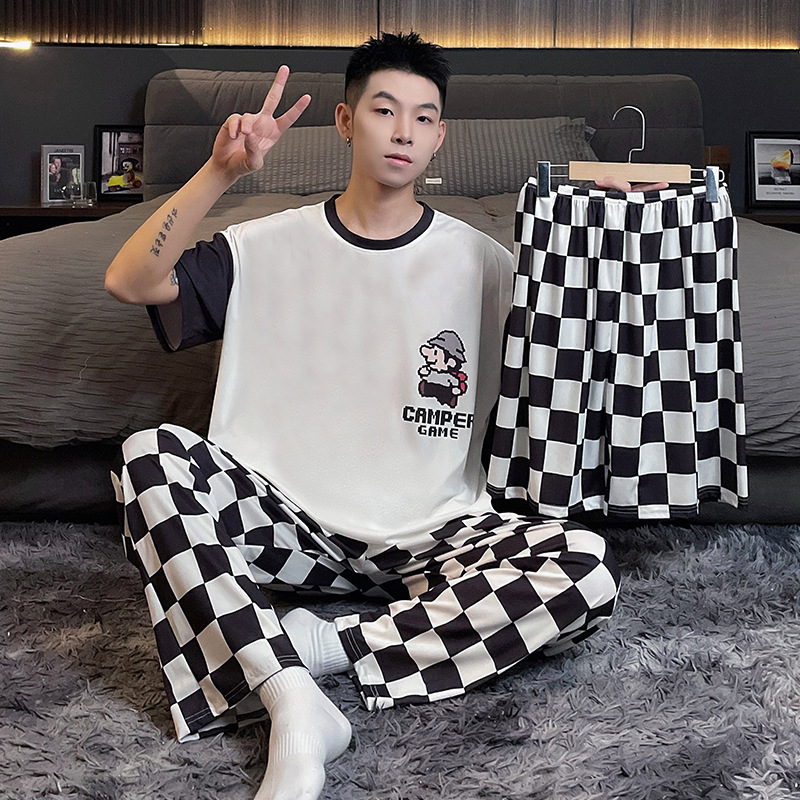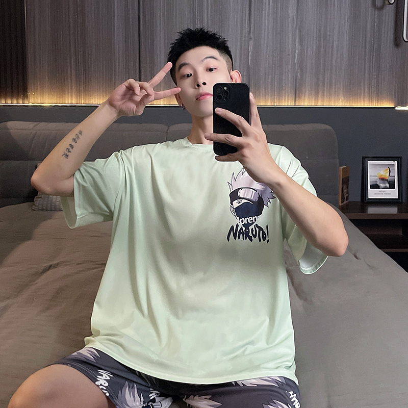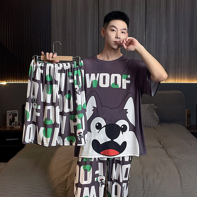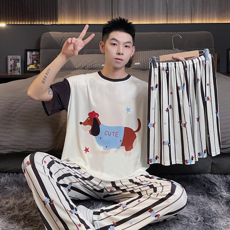 뉴 플러스 사이즈 남성 의류 40-150kg 아이스 실크 라운드 넥 3피스 시리즈