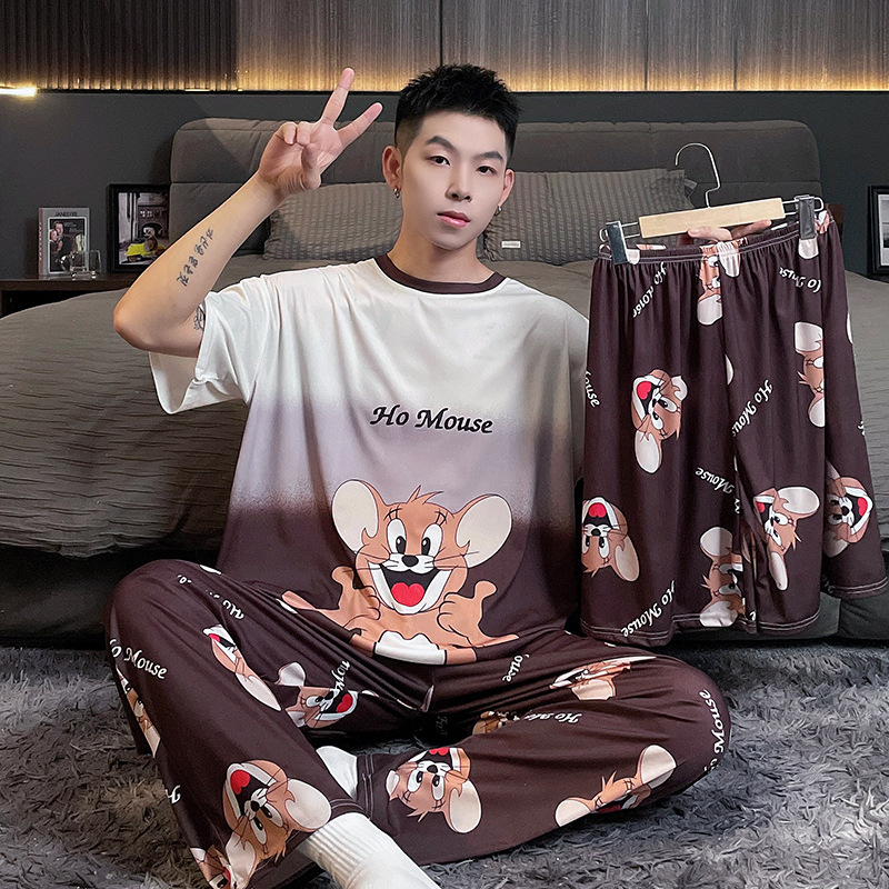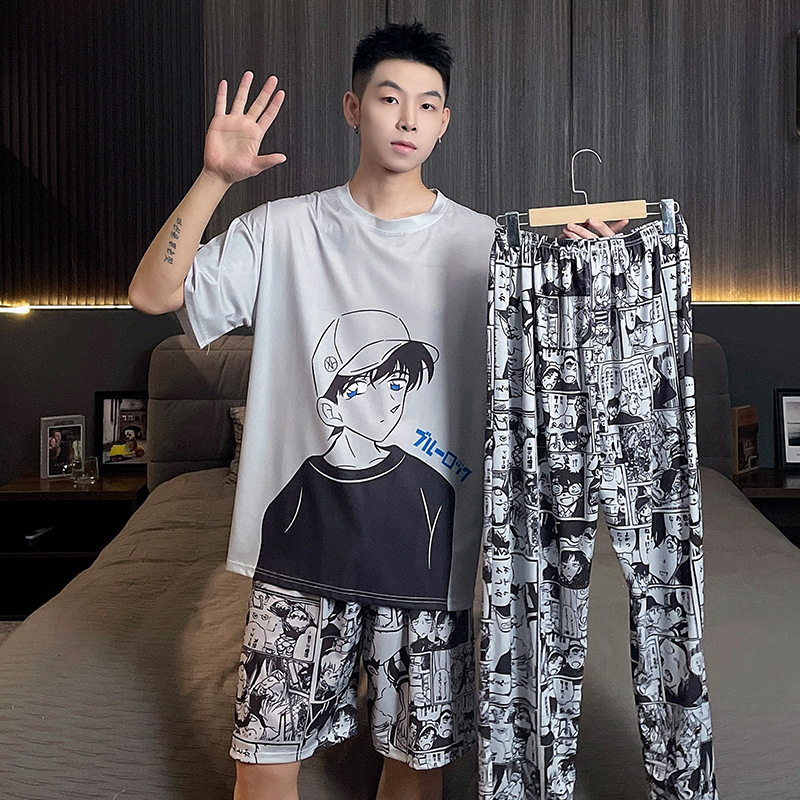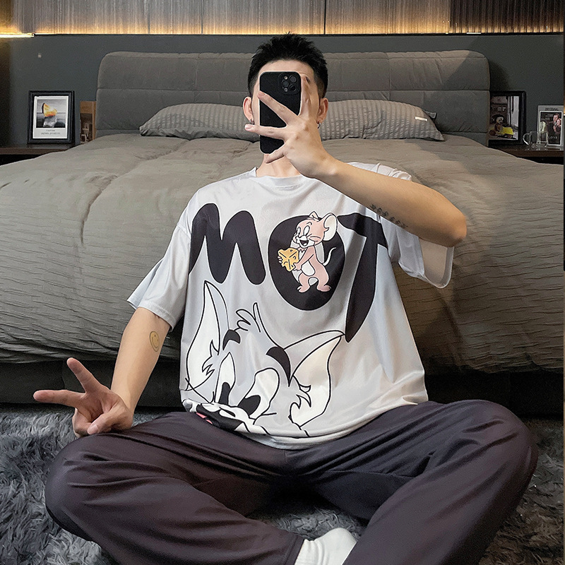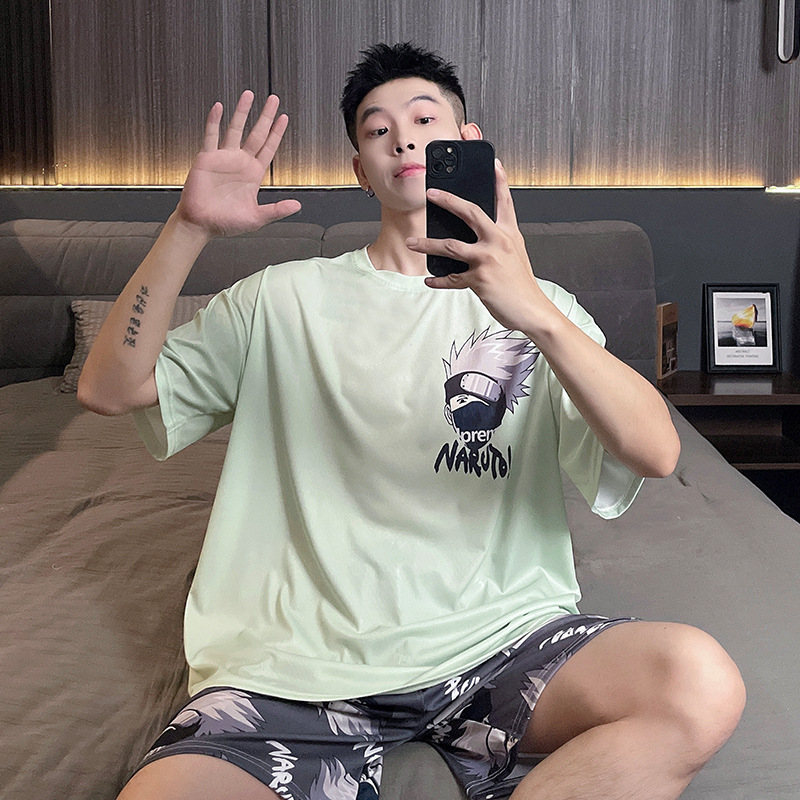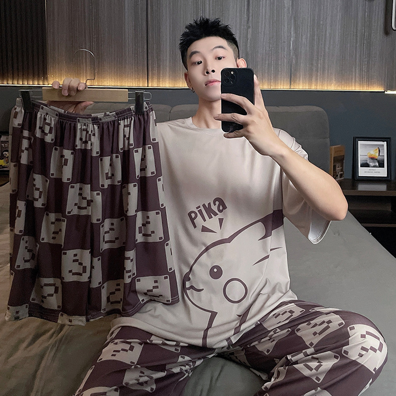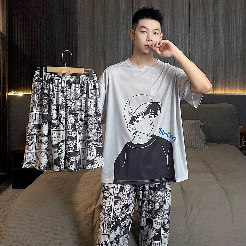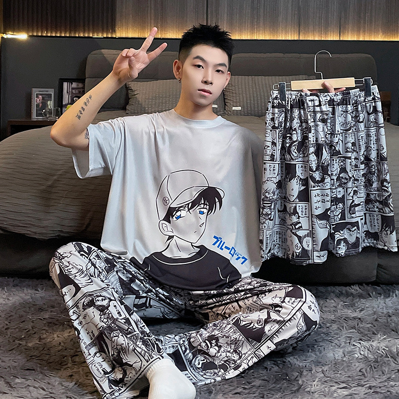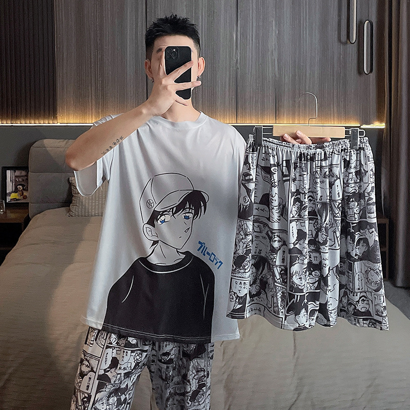 뉴 플러스 사이즈 남성 의류 40-150kg 아이스 실크 라운드 넥 3피스 시리즈