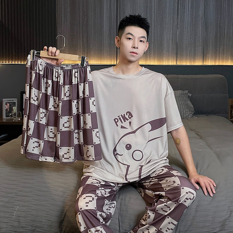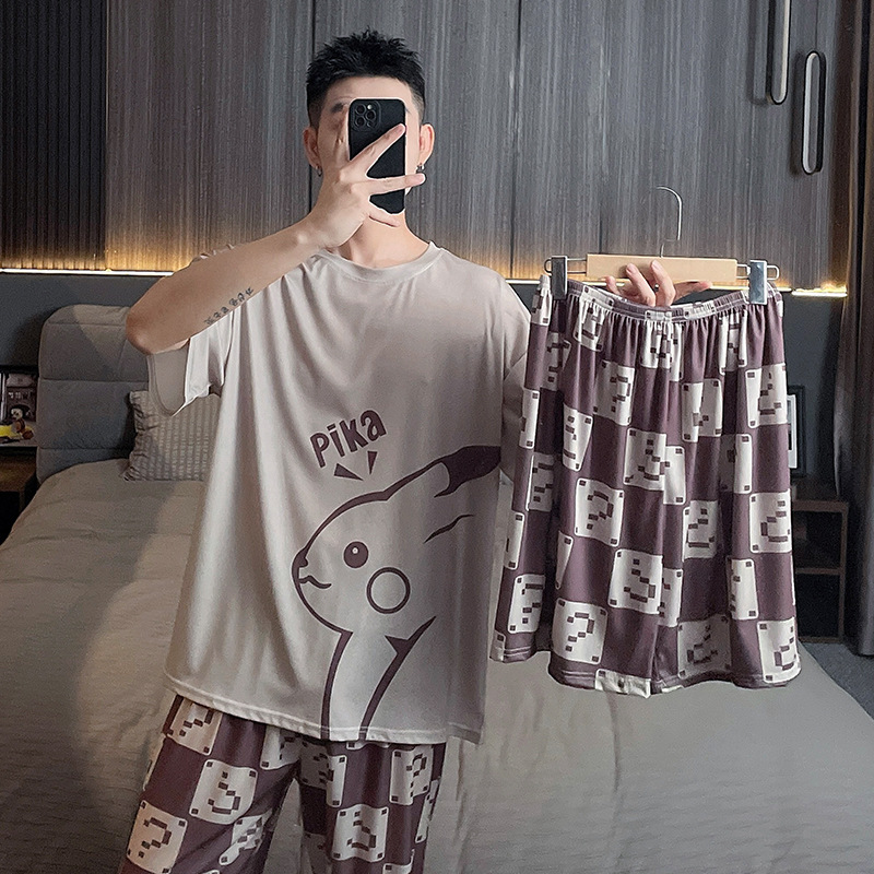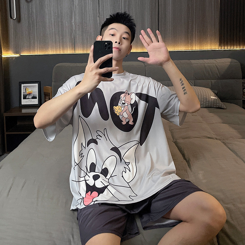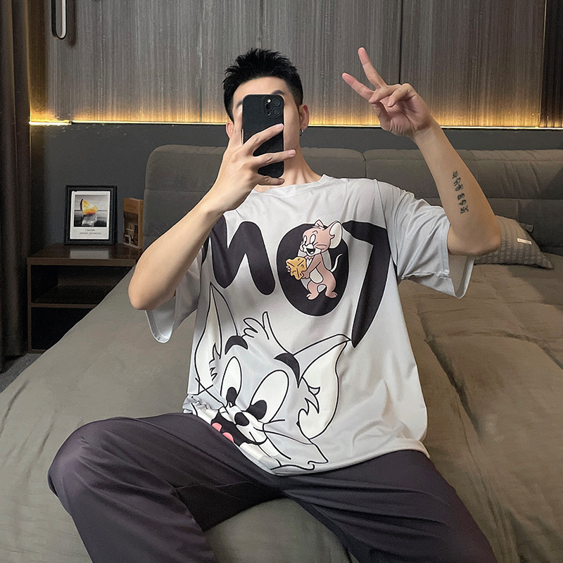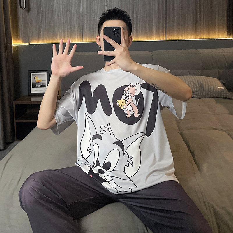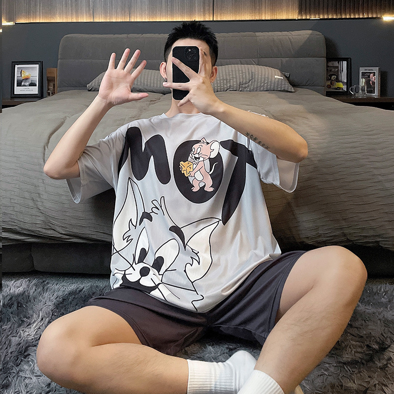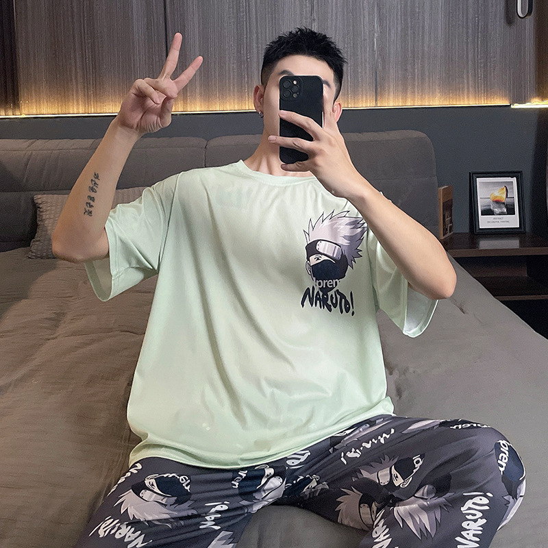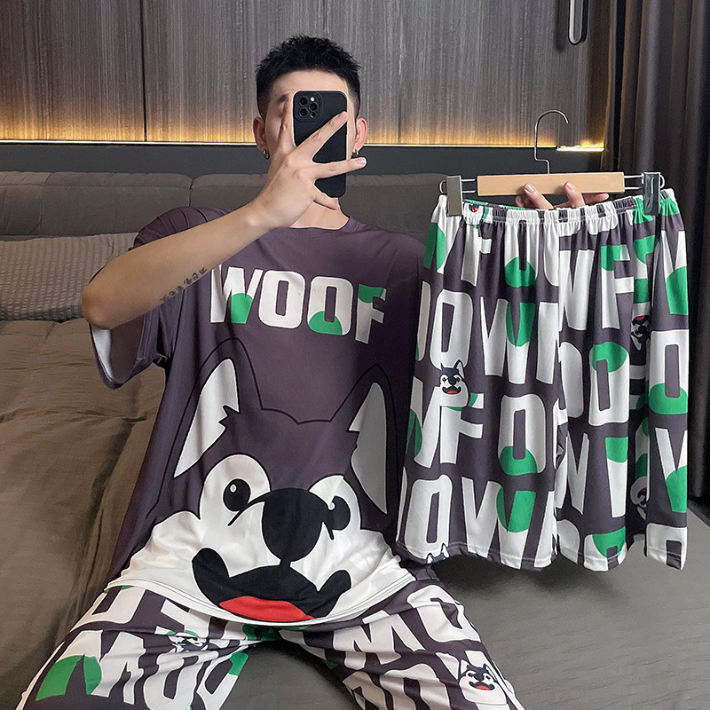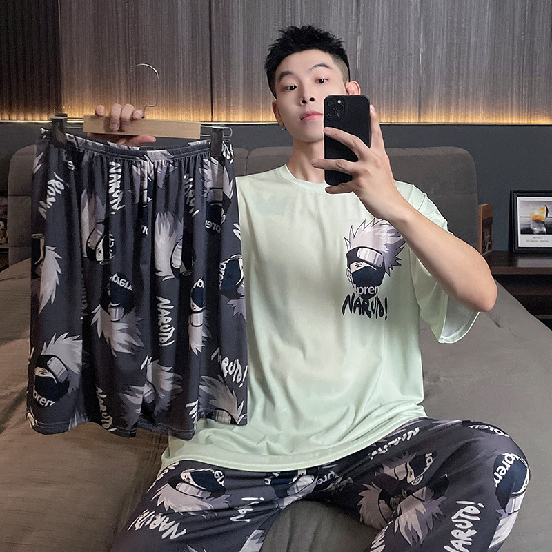 뉴 플러스 사이즈 남성 의류 40-150kg 아이스 실크 라운드 넥 3피스 시리즈
