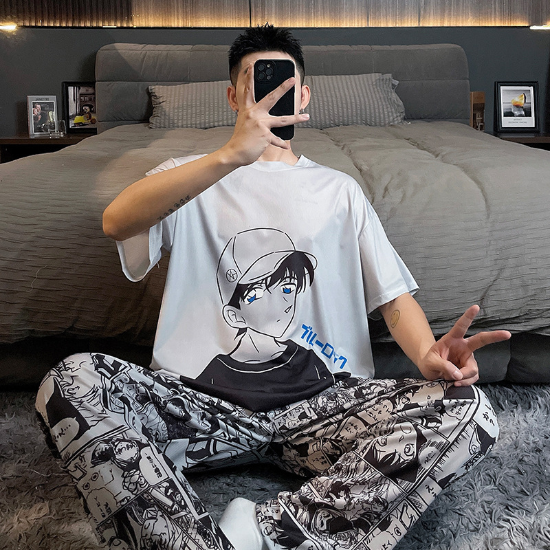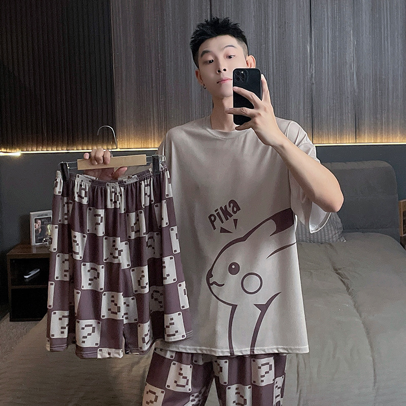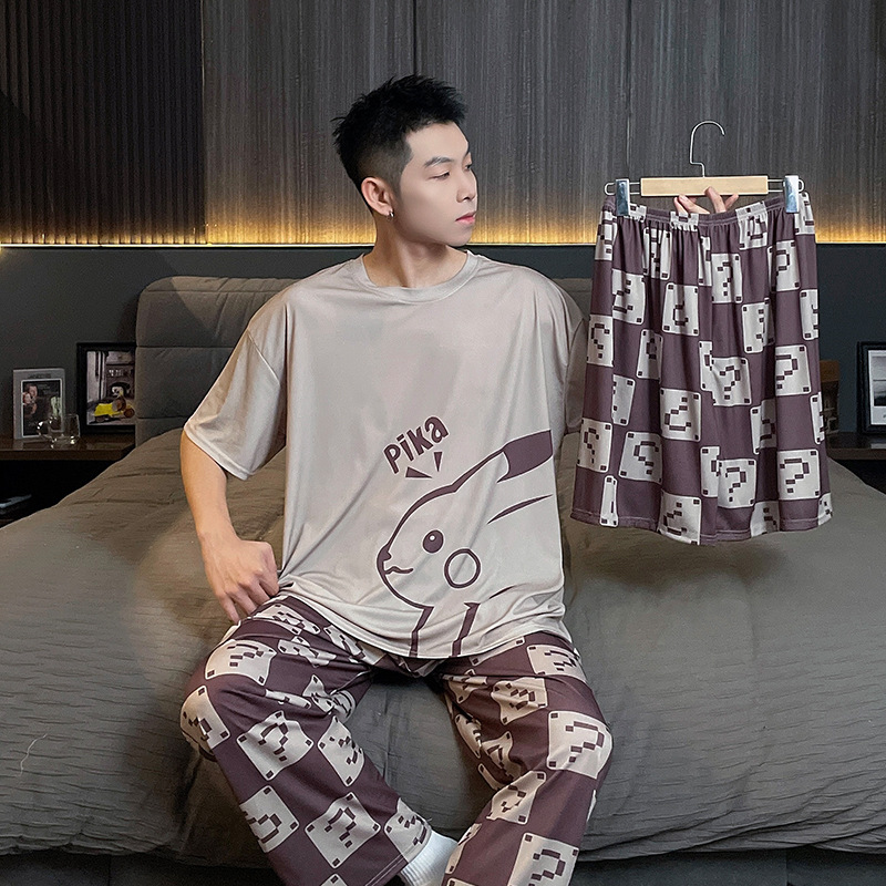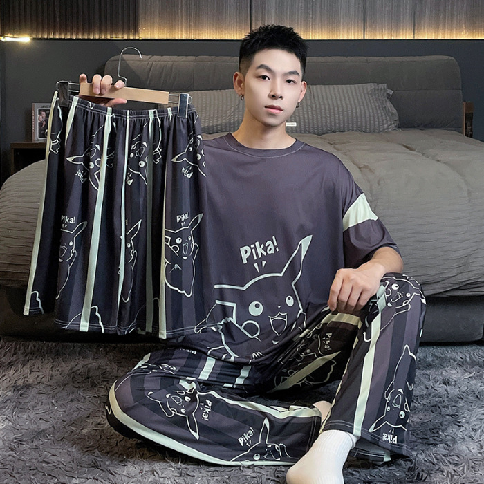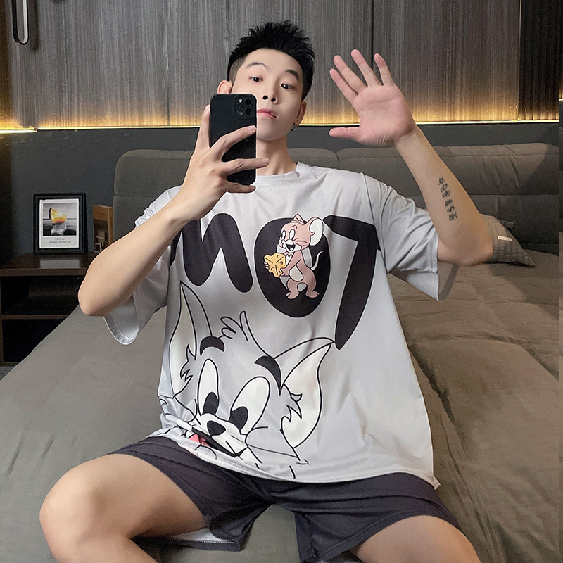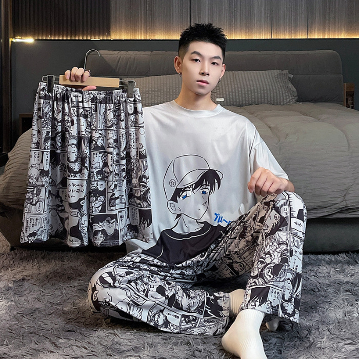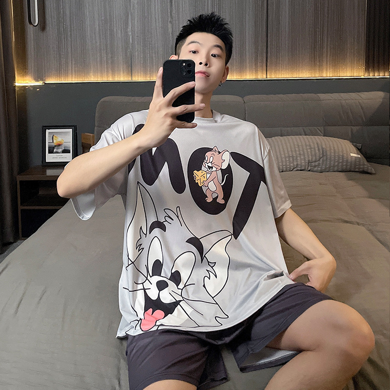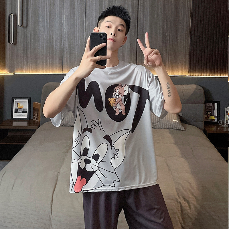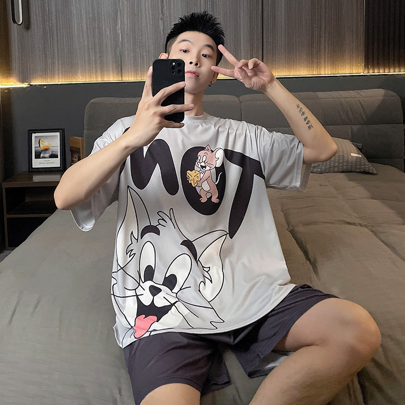 뉴 플러스 사이즈 남성 의류 40-150kg 아이스 실크 라운드 넥 3피스 시리즈
