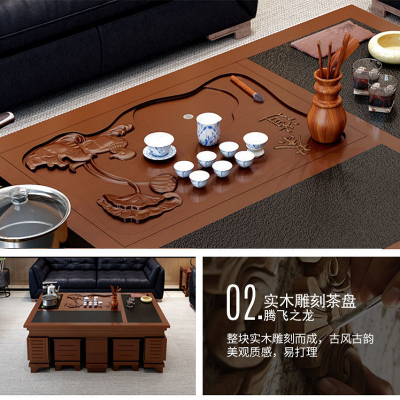 쿵푸 티 테이블 현대 간단한 화산석 다기능 티 테이블 조합 사무실 홈 티 트레이 거실 단단한 나무 티 테이블