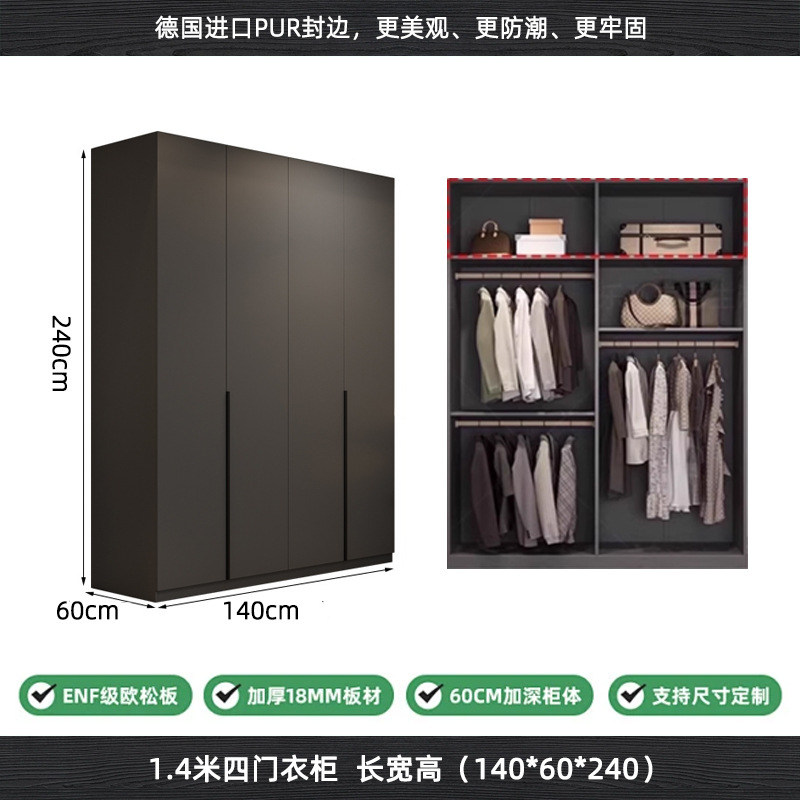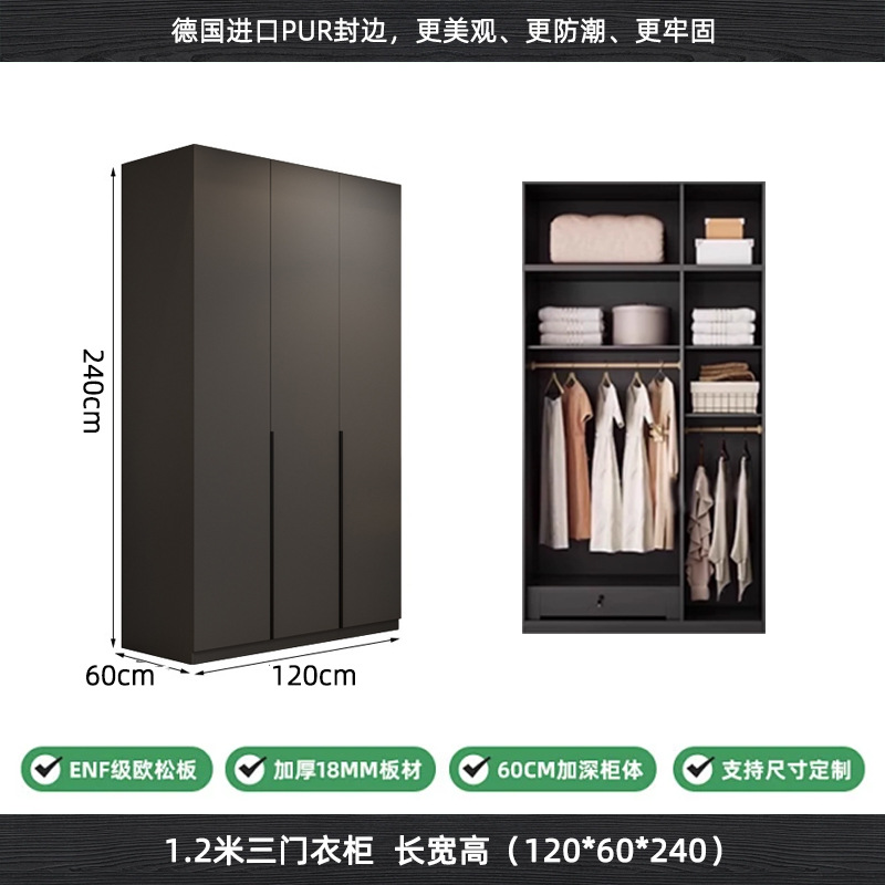 가벼운 고급 ENF 등급 유럽 소나무 판자 단단한 나무 옷장 침실 거실 홈 원 도어 블랙 캐비닛 보관 옷장